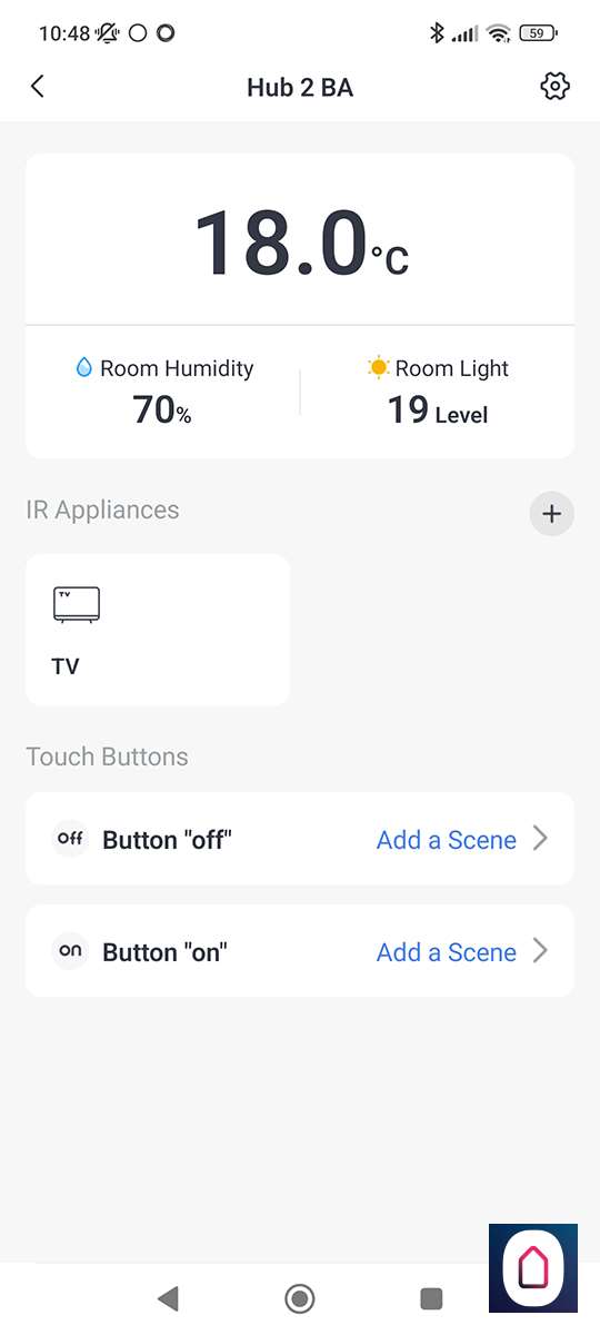 Omdat je dan verbonden bent met je netwerk kun je hem ook koppelen aan Google Home, Alexa, Apple Home Kit en gebruik maken van de API om hem te verbinden met bv de Homey. De hub heeft tevens een infrarood controller ingebouwd om je TV bv aan te sturen. En dat is niet alles want je kunt de luchtvochtigheid, temperatuur en het lichtnivo mee meten. Allemaal handige dingen om je huis nog slimmer te maken. Dit alles kun je aflezen op de ingebouwde display. Onderaan deze display zit ook nog een knop om een scene te starten.