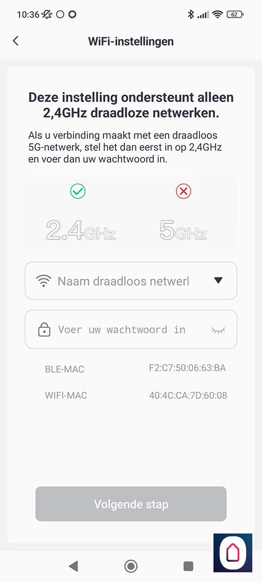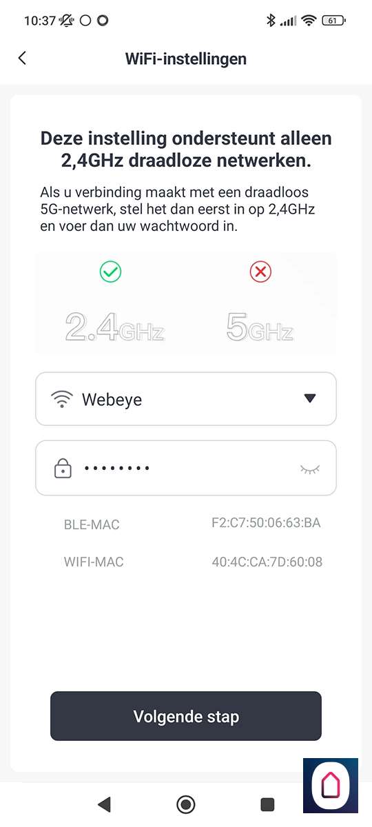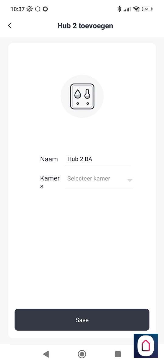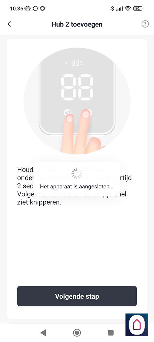 Voorzie de hub van stroom met de bijgeleverde USB kabel. Gebruik geen andere kabel want deze heeft niet de ingebouwde temperatuur/vochtmeter. We starten vervolgens de APP op en drukken weer op het plusje. We zien direct bovenin de Hub staan dus selecteren deze. Nu moeten we even de 2 knopjes aan de voorkant tegelijk indrukken. Het lampje zal snel gaan knipperen, wat aan geeft dat hij in de leermodus staat. Nu gaan we hem verbinden met onze lokale netwerk door de WiFi gegevens op te geven.