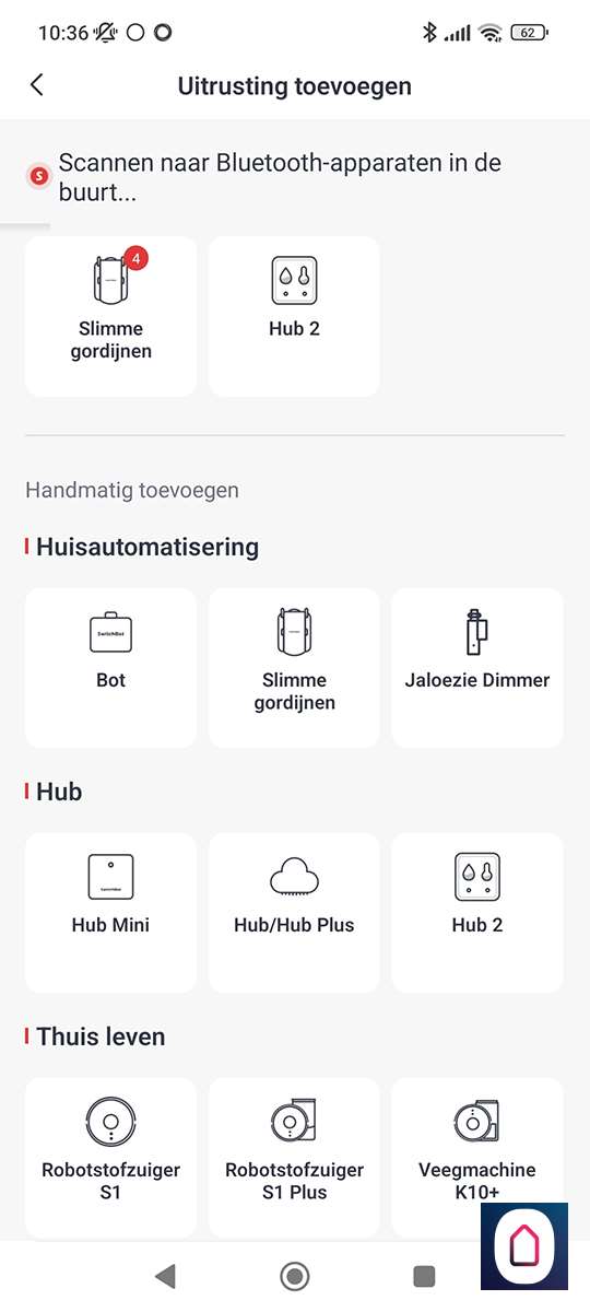 Bij deze review kit hebben we ook een hub gekregen. Deze hub is je centrale aanstuurpunt voor al je SwitchBot producten. Zoals al gezegd werkt Curtain via bluetooth waardoor je hem lokaal kunt aansturen met je telefoon. Als je dus uit huis bent kun je hem niet bedienen. Hiervoor je de hub want deze maakt verbinding met je lokale WiFi netwerk en heb je een mogelijkheid tot een Cloud verbinding. Je kunt dan, als je weg bent, ook je gordijnen bedienen.