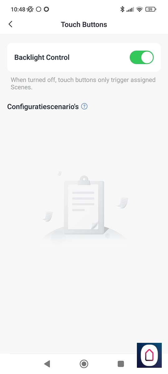 Aan de onderkant van de display zitten twee knoppen waar je een scene mee kunt starten. Om dit te gebruiken moet je eerst een scene aanmaken. Naar dit onderdeel gaan we in het volgende hoofdstuk kijken.