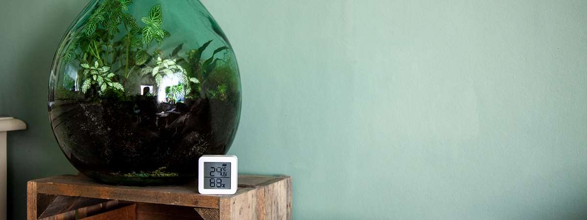 Het laatste product wat we van SwitchBot hebben gekregen is de temperatuur- en luchtvochtigheidsmeter. Hiermee kun je, zoals je zelf al kunt raden, de temperatuur en de luchtvochtigheid mee meten. Hij heeft een display waarop je direct de waardes kunt aflezen.,nnen