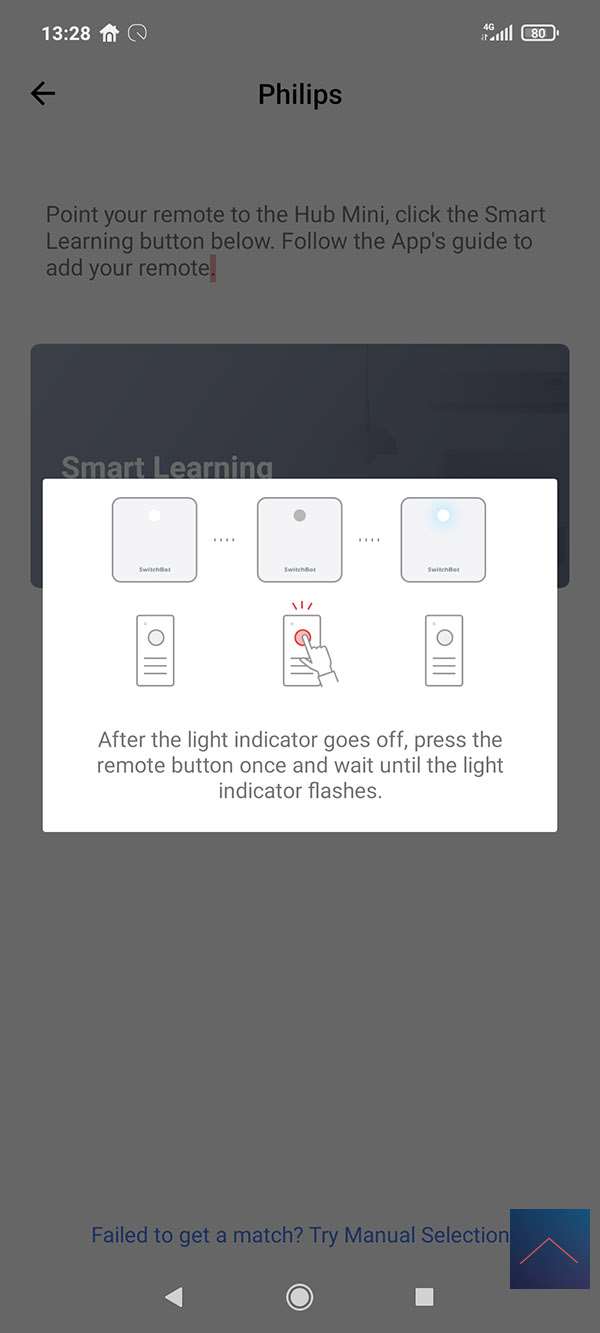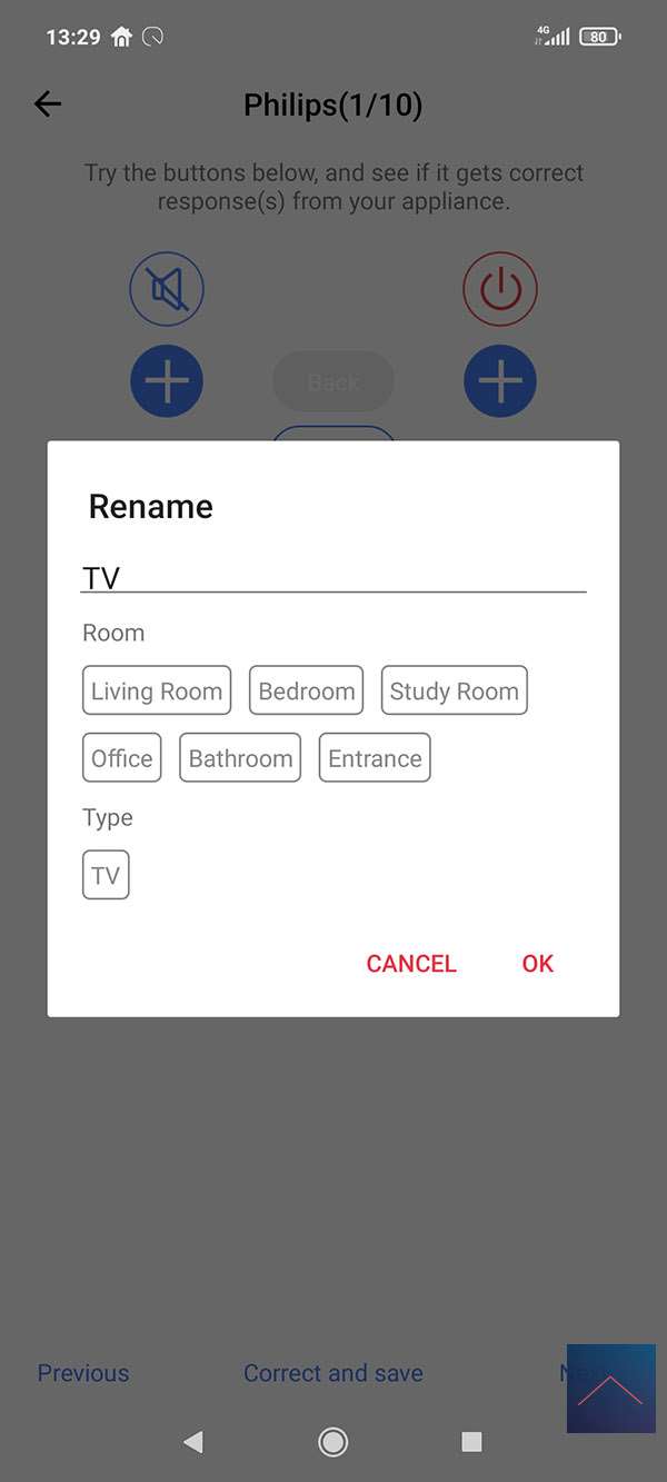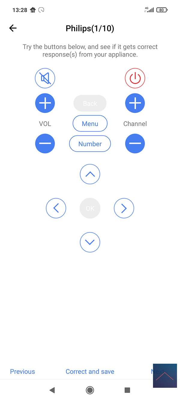 Nu halen we de Philips afstandsbediening erbij en drukken op een knop. De APP komt nu met wat standaard knoppen welke je kunt toevoegen. Je kunt deze vervolgens ook testen, zorg dat de Hub in "het zicht" van de TV is.