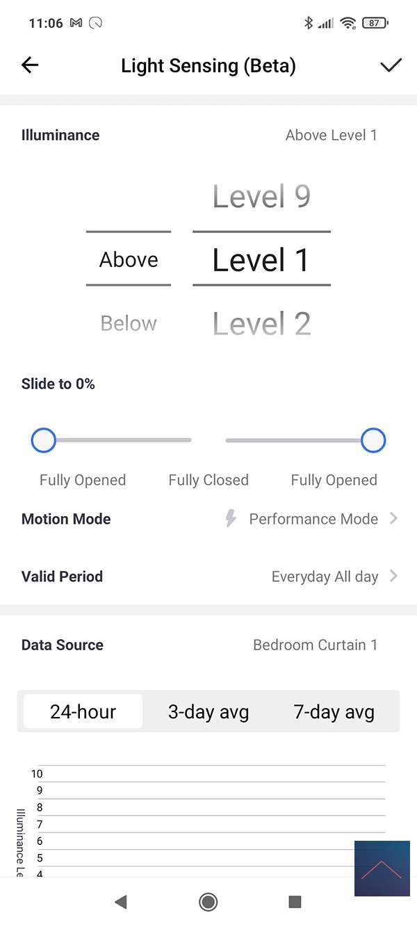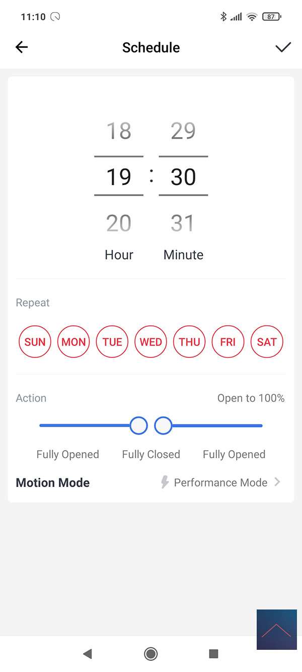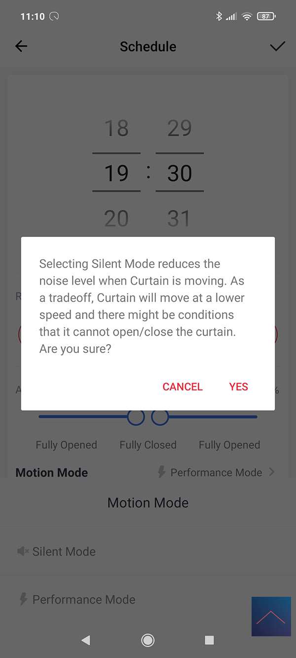 Naast het bedienen op licht kun je ook gebruiken maken van een schema. Hierbij kun je een tijd en dag van de week selecteren en aangeven op de gordijnen open of dicht moeten. Er is ook een mogelijkheid om bv de gordijnen voor de helft te openen. Wil je nou dat de SwitchBot wat minder geluid maakt dan kun je kiezen voor een "silent mode" dan maakt het openen minder geluid maar gaat ook langzamer.
