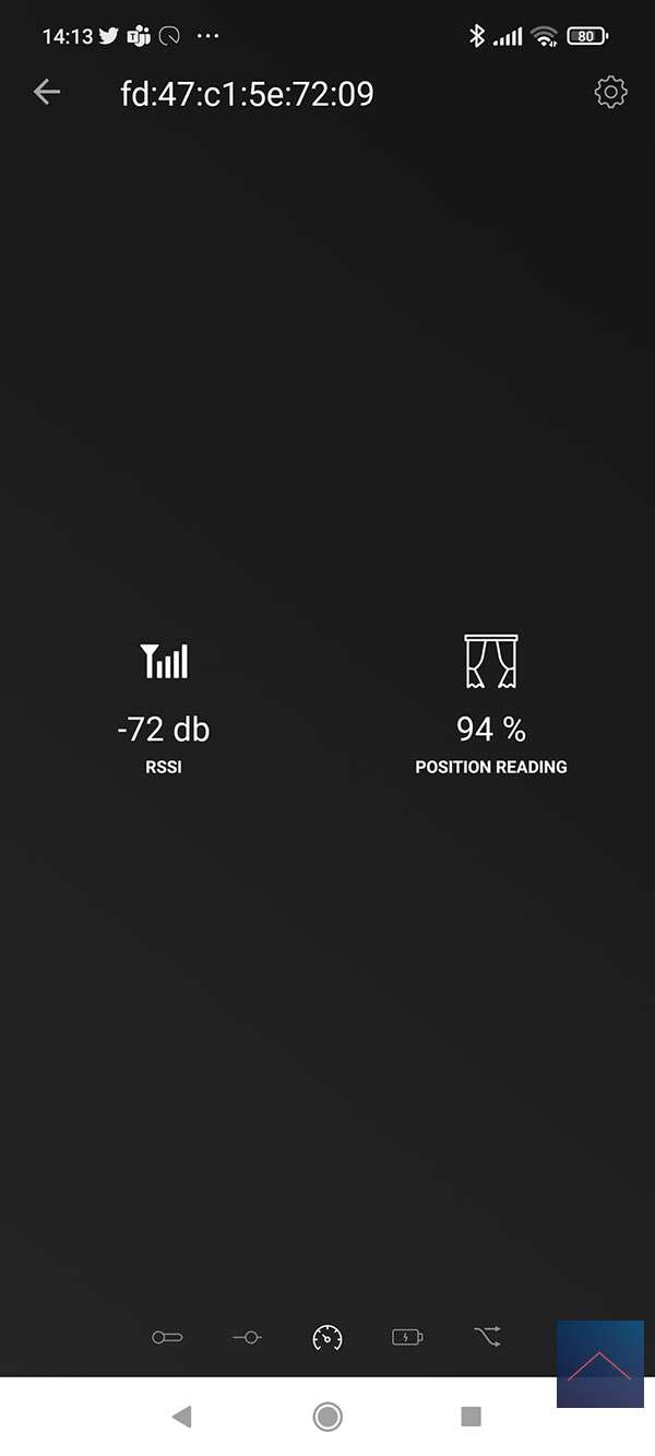 Je kunt de gordijnen open/dicht doen, hem op een bepaalde positie zetten en je ziet de signaalsterkte, positie van de gordijnen en het batterijniveau.