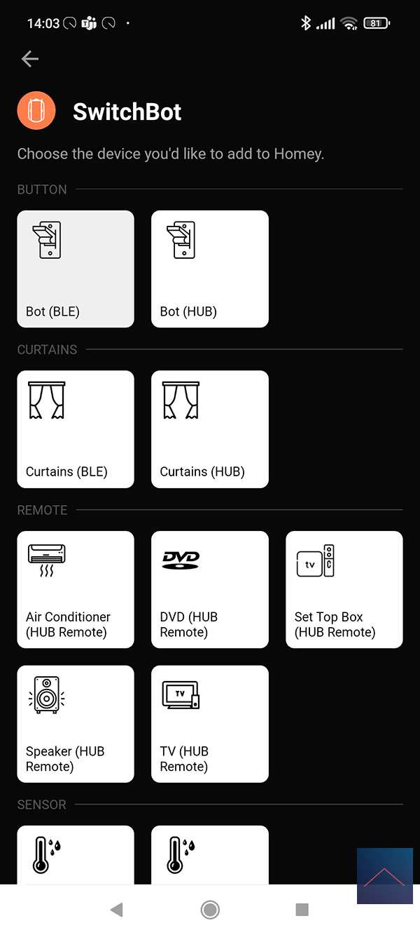 Wil je de boel nou echt slim maken dan is een echte smart home controller natuurlijk de beste optie. De Homey is zo'n controller hiermee kun je complexer regels maken en gemakkelijk apparaten toevoegen. Bij de laatste is het een vereist dat je een APP hebt. Voor de SwitchtBot is dit het geval. We gaan hem dus toevoegen.