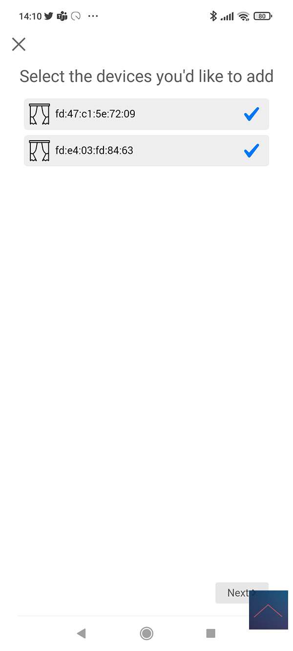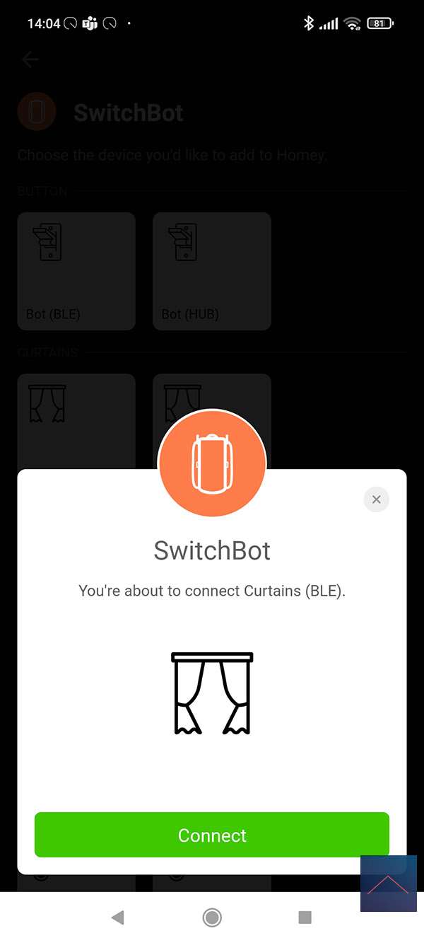 Je logt in de Homey APP en drukt op het plusje en zoekt op SwitchBot. Vervolgens selecteren we de Curtain (BLE) en installeren we de APP. Nu gaat de Homey zoeken naar de gordijnen. In mijn geval vindt hij 2 gordijnen en kan ik deze toevoegen.
