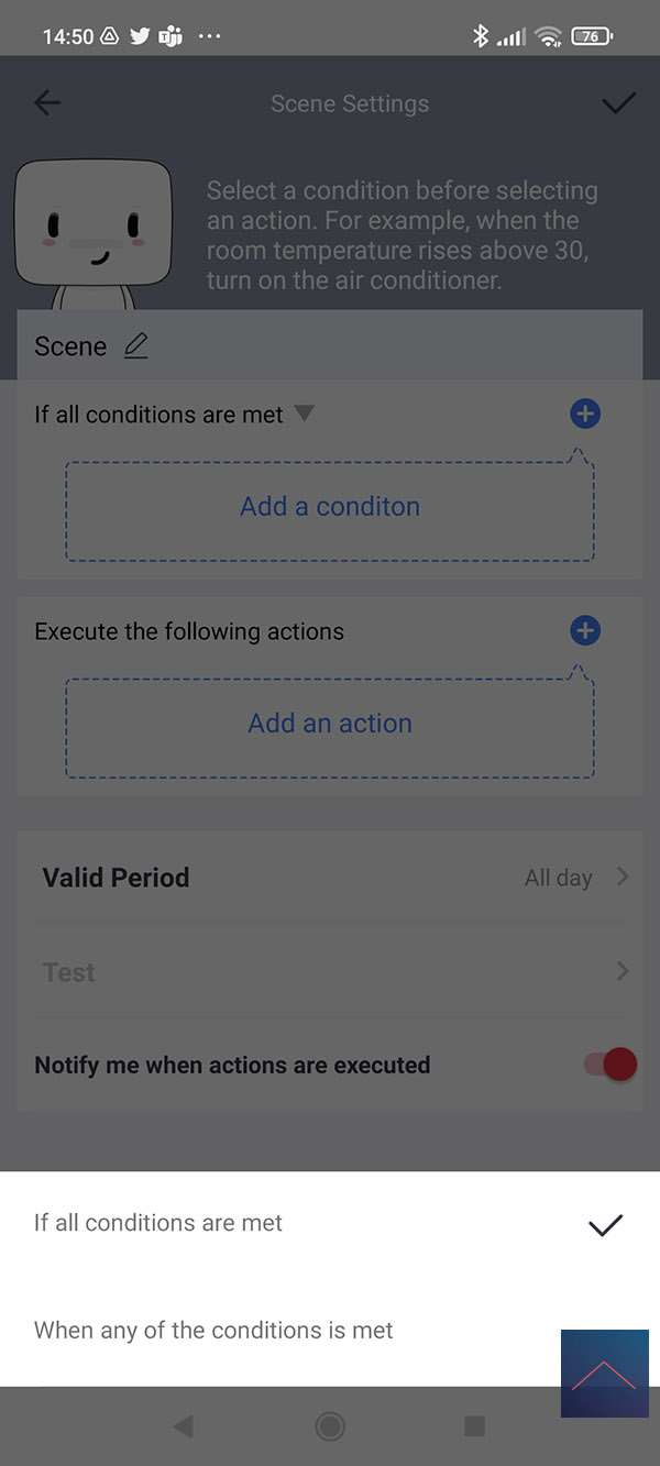 Het is namelijk zo dat je alleen apparaten kunt gebruiken welke verbonden zijn met de Cloud. Nu is daar nog wel overheen te komen maar wat vervelende is dat je niet alle apparaten kunt gebruiken als triggers. Al eerder in dit artikel had ik als voorbeeld dat als ik mijn TV aanzet, dat dan de gordijnen moeten dicht gaan. Helaas kan ik niet triggeren op de TV.