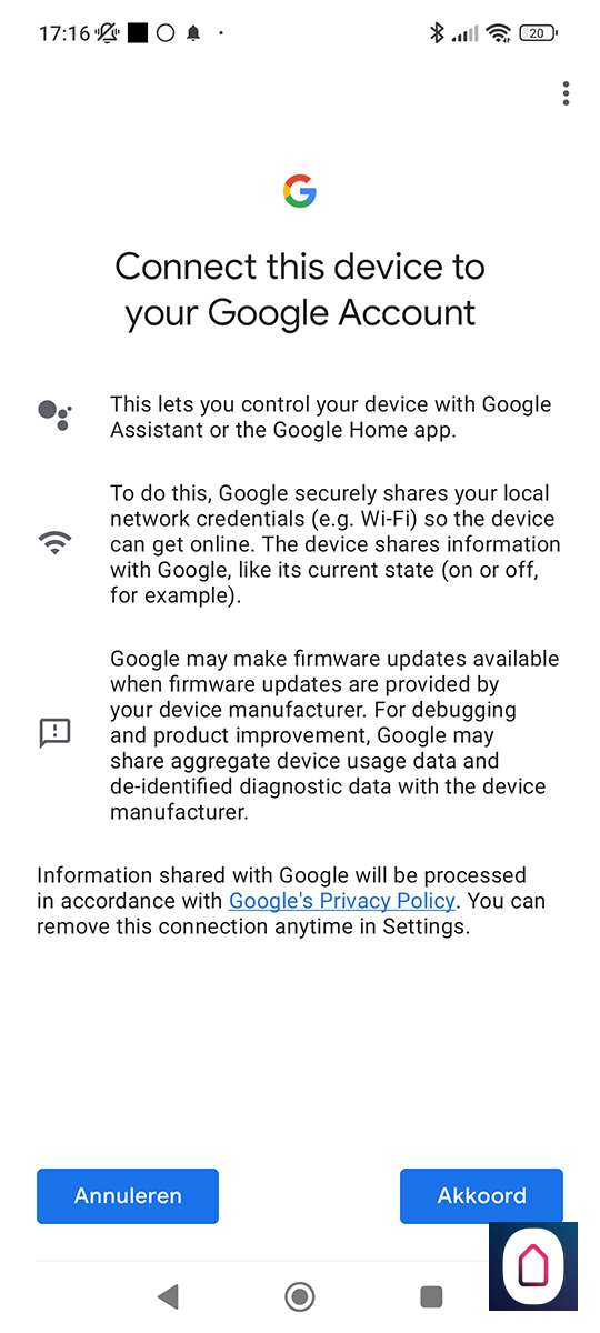 Het toevoegen gaat dmv een QR code en via je Google Home Hub. Ook hier kunnen we kort over zijn: want het toevoegen werkt ook hier nog niet. Hij vindt hem wel maar vervolgens duurt het een eeuwigheid en geeft hij een time out waardoor hij hem niet kan toevoegen. Er wordt geen reden opgegeven waarom hij het niet doet. Dit gedeelte is ook nog in Beta, dus kan zijn dat dit in de toekomst wel gaat werken. We houden het in de gaten.