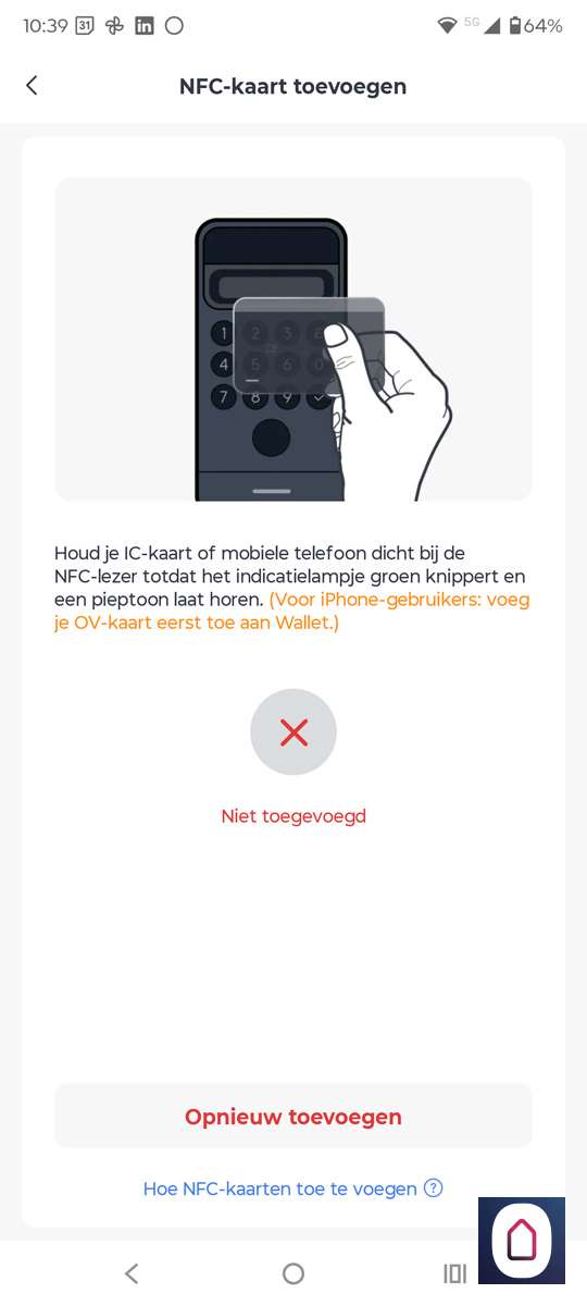 - Ontgrendelen met een NFC-kaart (werkt vlot)