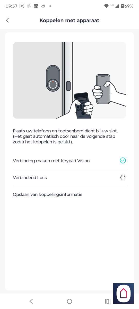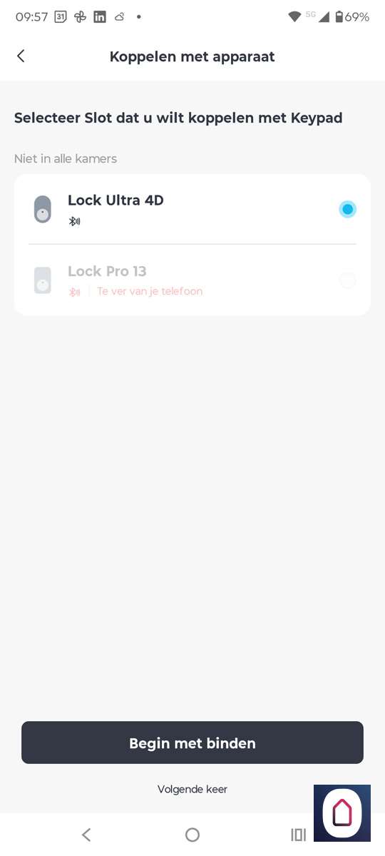 Nu moeten we de deur vergrendelen om de code even invoeren. Hierdoor wordt de keypad gekoppeld aan het slot. We selecteren vervolgens het slot en hierna zie we hem verbinding maken. Hierna kunnen we de keypad gaan gebruiken.
