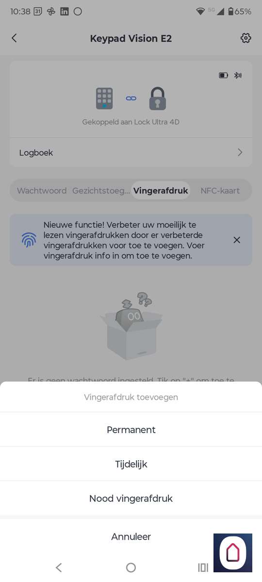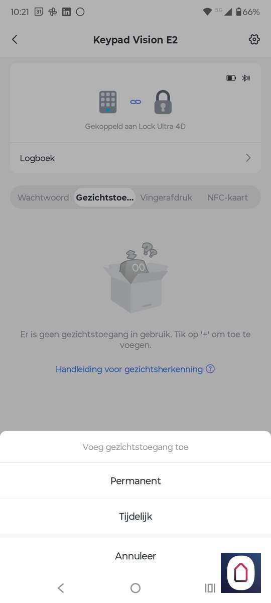Werkt in de praktijk zeer snel en altijd zelfs als het regent of koud is buiten. Het is een fijne, laagdrempelige manier van toegang die vooral handig is voor mensen die je niet wilt belasten met een app of smarthome-gedoe. Ideaal dus voor kinderen, ouders of kort verblijf via Airbnb. Helaas kregen we de NFC op de telefoon niet werkend. Dat is jammer.