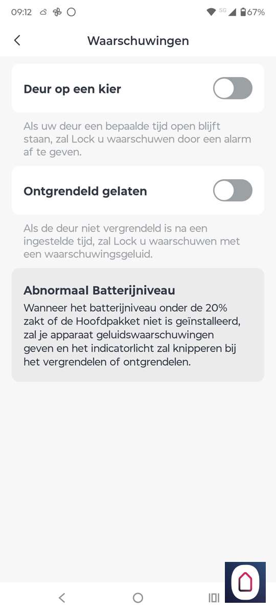 Naast de standaard melding kun je nog specifieke meldingen instellen zoals bv: als de deur op een kier staat of als de deur niet ontgrendeld is na een bepaalde periode dan geeft hij een melding.