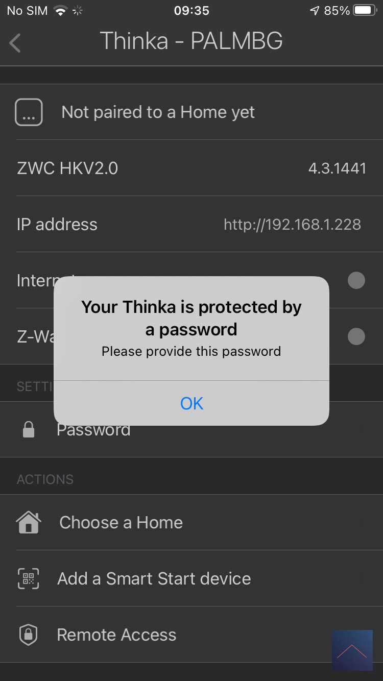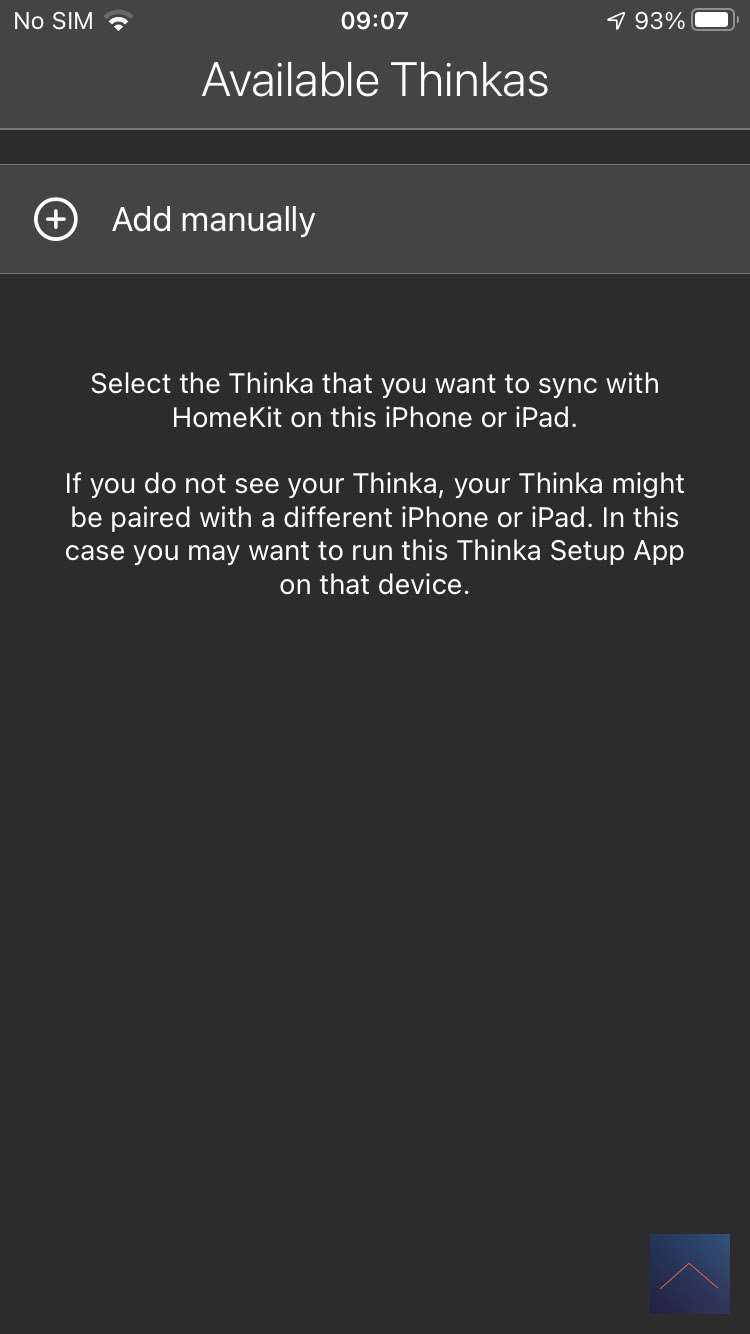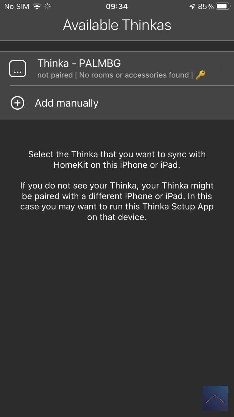Nu we een apparaat hebben, zou je verwachten dat er uitgelegd wordt wat de vervolgstappen zijn. Dit is niet het geval, maar na wat heen er weer klikken in de webinterface kom ik er achter dat ik de Thinka APP moet installeren om de Thinka te koppelen aan HomeKit.