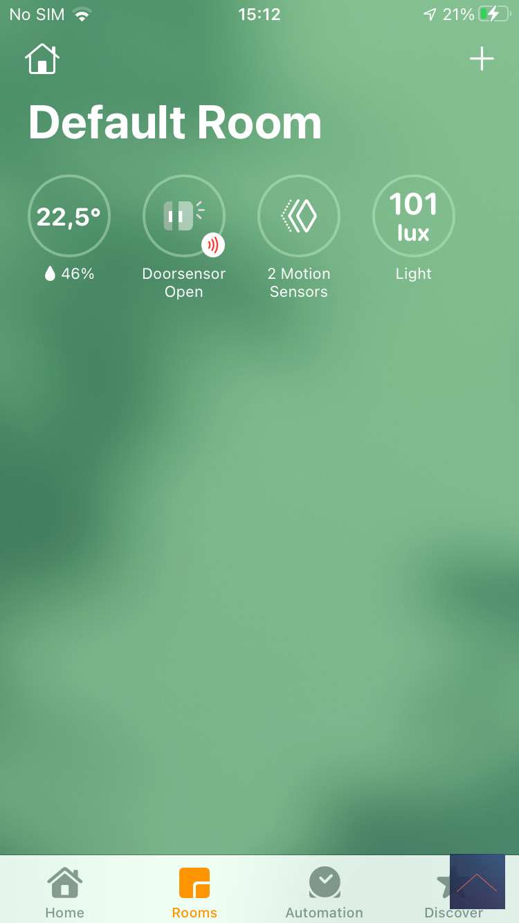Maar als ik in Home Kit of op de dashboard staat hij er niet bij. Misschien moeten we ook even geduld hebben want de APP geeft namelijk een melding dat het apparaat aangezet moet worden. Na een paar minuten komt de sensor naar voren.