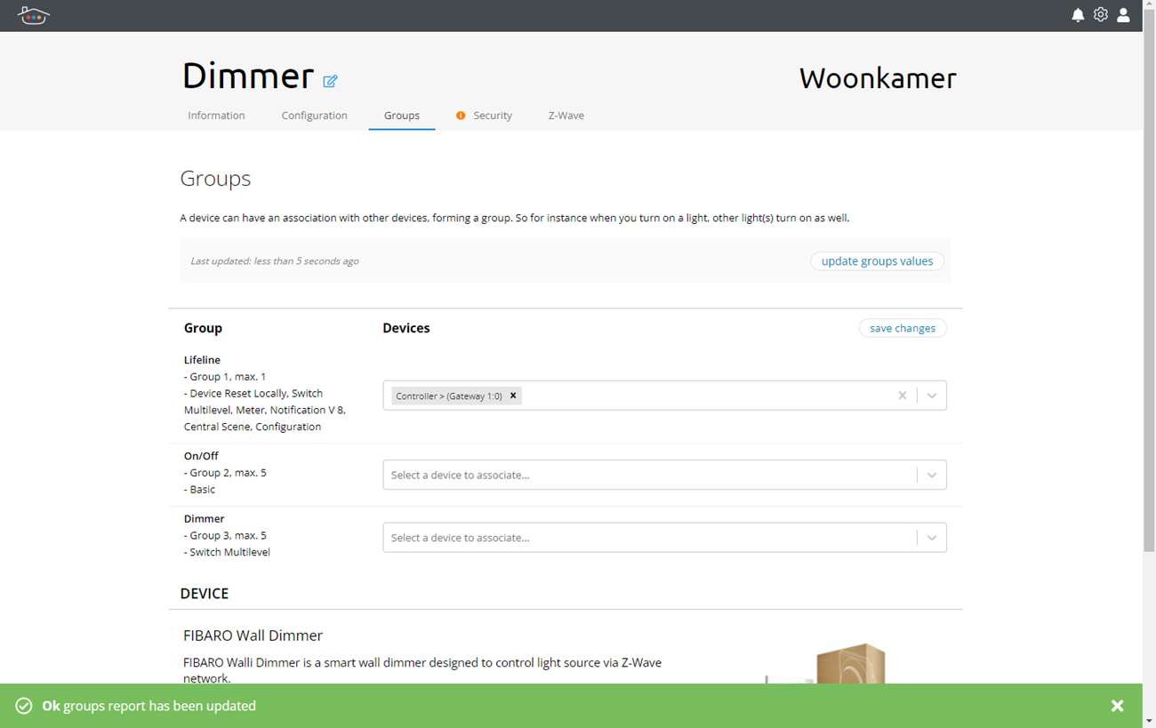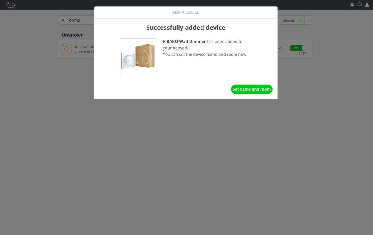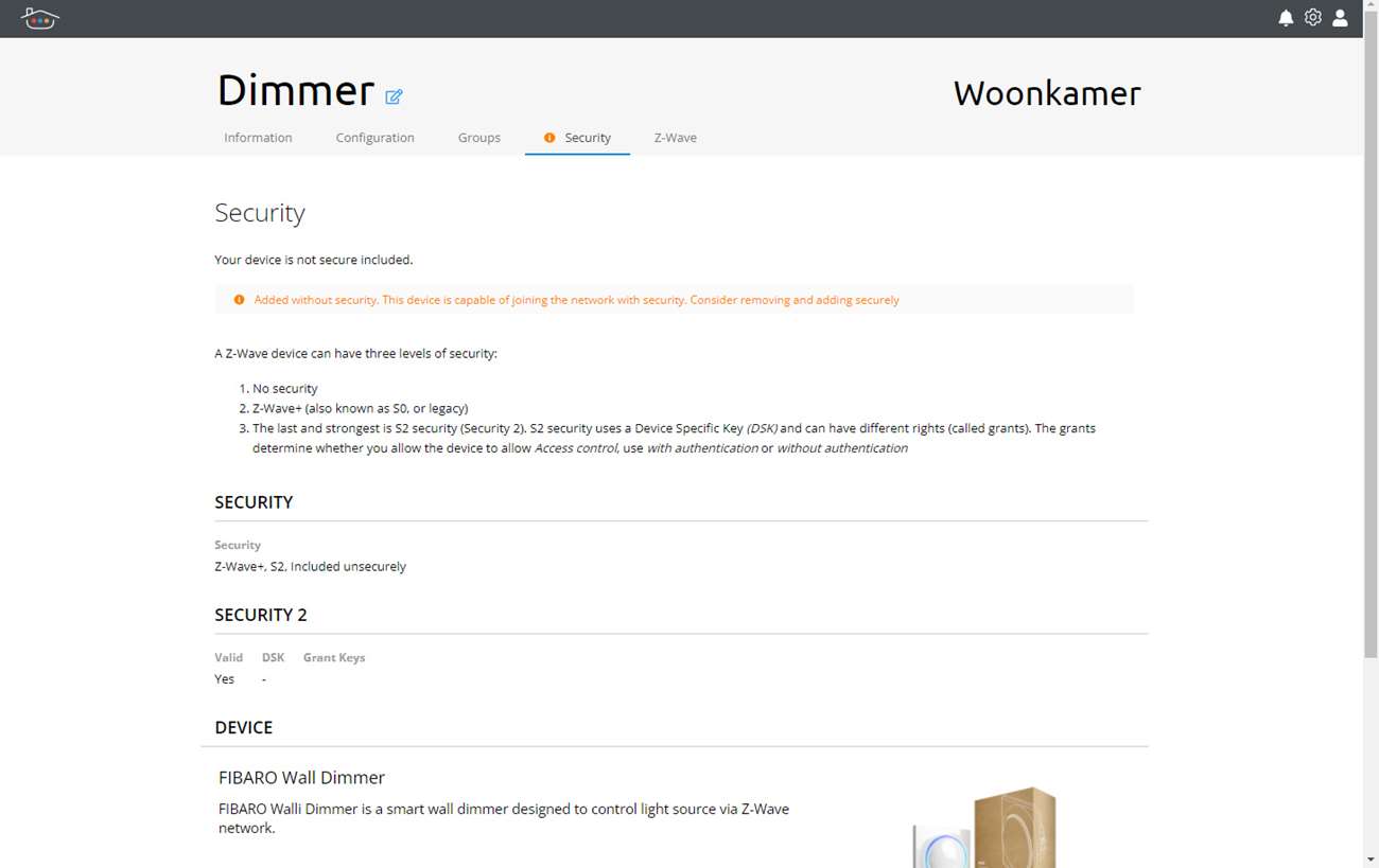 We beginnen met het toevoegen van de Walli Dimmer van Fibaro. Fibaro is een fabrikant die al meerdere jaren Z-Wave apparaten maakt. Ze zijn de marktleider op dit gebied. Dus een nieuwe controller zou deze dimmer zonder problemen moeten ondersteunen.