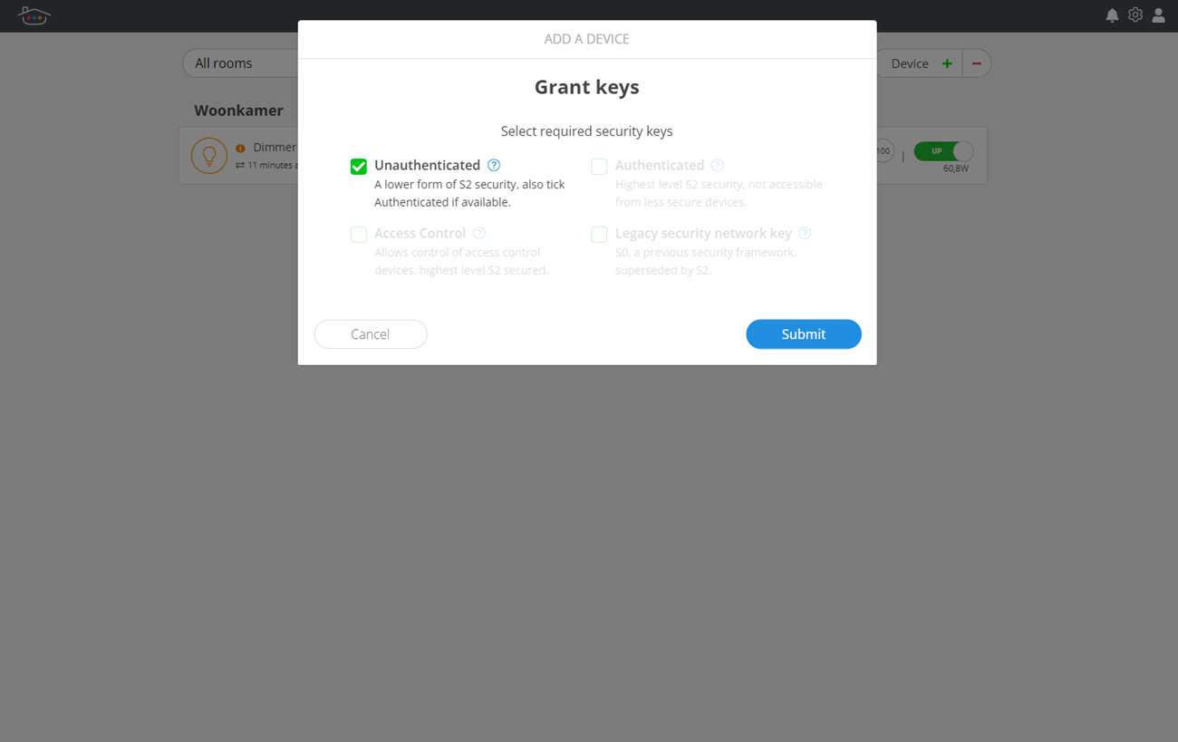 Z-Wave apparaat toevoegen: