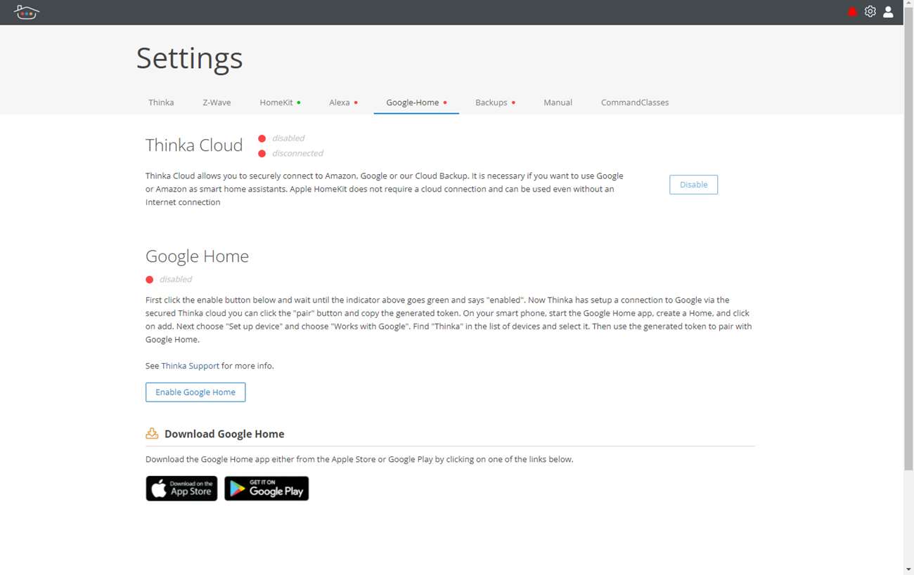 Bij een goede hub mag de aansturing via spraak natuurlijk niet ontbreken. Bij de Thinka krijg je de mogelijkheid om dit via Google Home, Alexa of Sire te regelen. Wij hebben zelf geen Alexa maar wel een Google Home, dus deze gaan we koppelen.