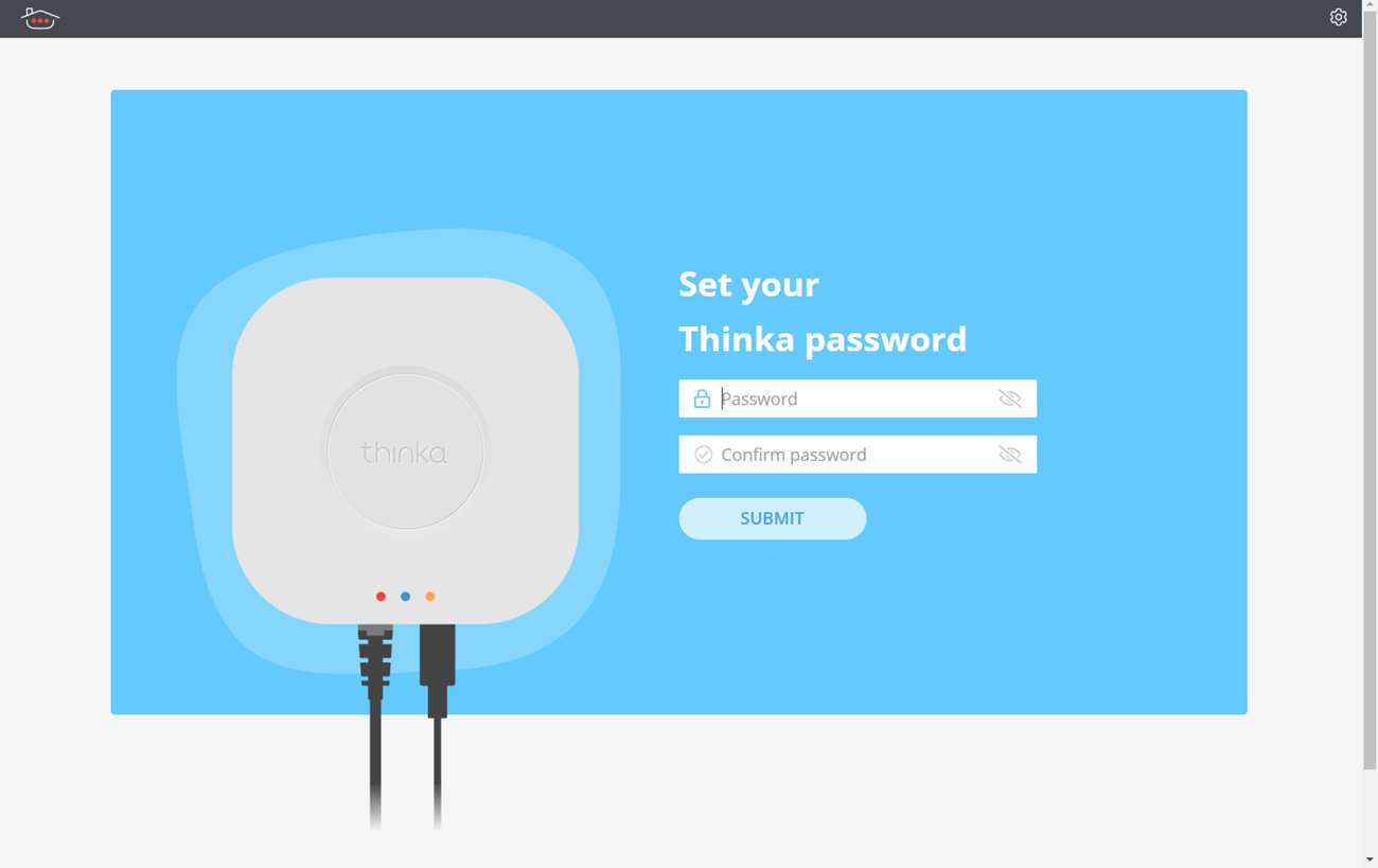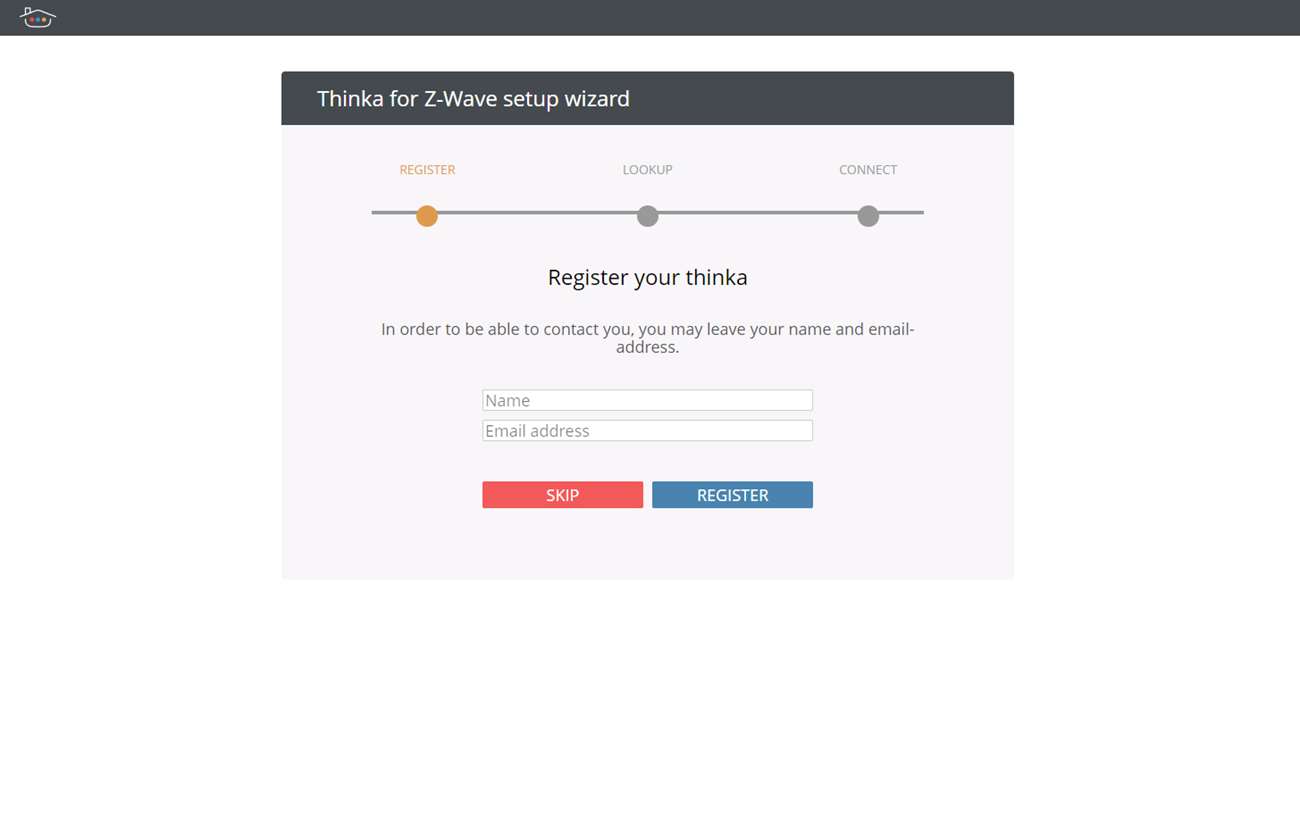 Als alles gereboot is ga ik weer naar https://setup.thinka.eu en nu kom ik ook in het "welkom" scherm. Hier moet ik mijn naam opgeven en e-mailadres om te registreren. Vervolgens moet ik een wachtwoord opgeven om de boel te beveiligen. Hierna kom ik in het scherm om apparaten toe te voegen.