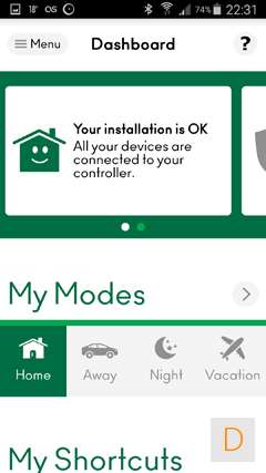 De Vera kan natuurlijk bediend worden via je smartphone. Vera heeft hiervoor een APP ontwikkeld (IoS, Android). Via deze APP kun je de verschillende geïnstalleerde modules bedienen. Het geheel is ruim opgezet en ziet er overzichtelijk uit en reageert snel. Over het opstarten, van de APP, ben ik niet zo te spreken. Je moet lang wachten tot je wat kunt doen. Dit is niet fijn als je even snel een lamp wilt aanzetten.