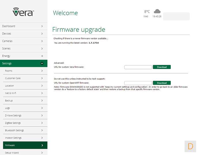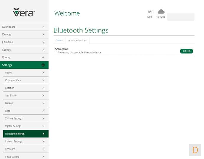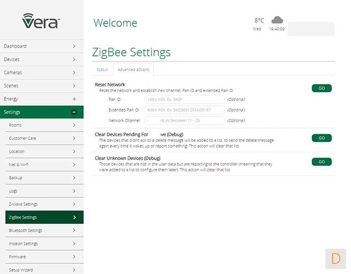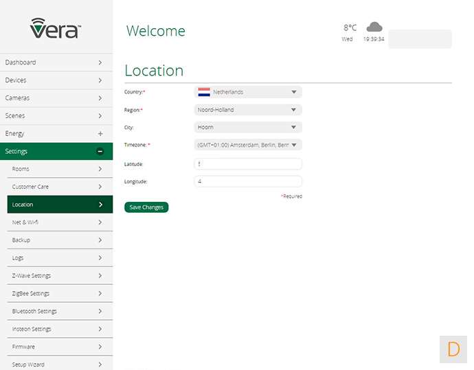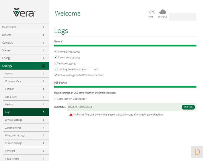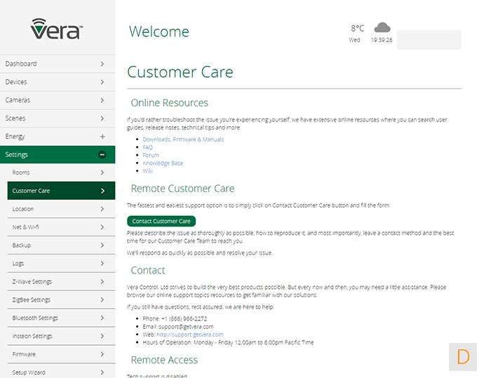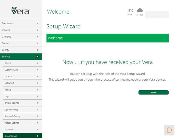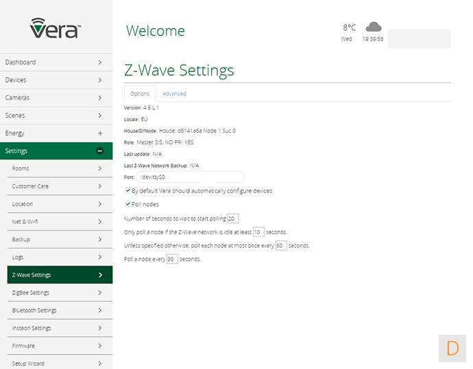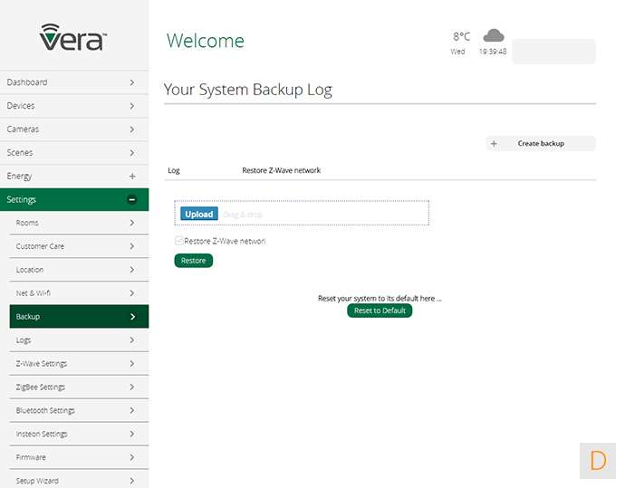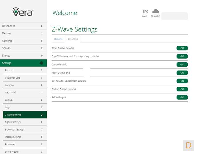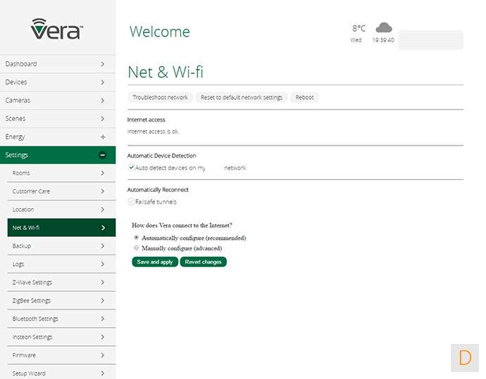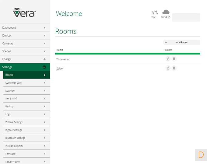 In dit paneel vind je de diverse instellingen van je netwerk, een backup mogelijkheid, je kamers, en de setup wizard. Hier vind je ook de mogelijkheid om Vera toegang te geven tot je controller. Fijn geregeld.