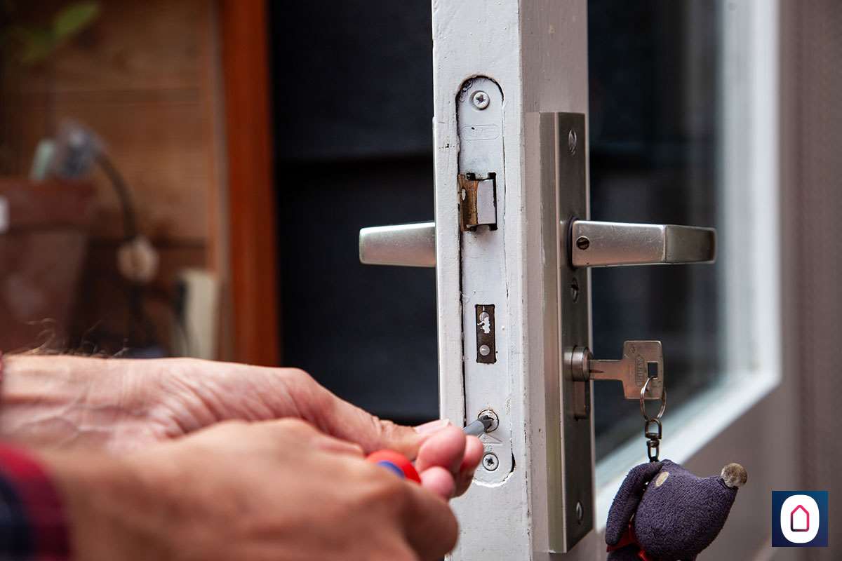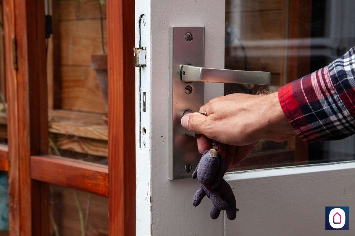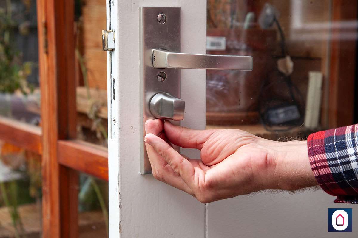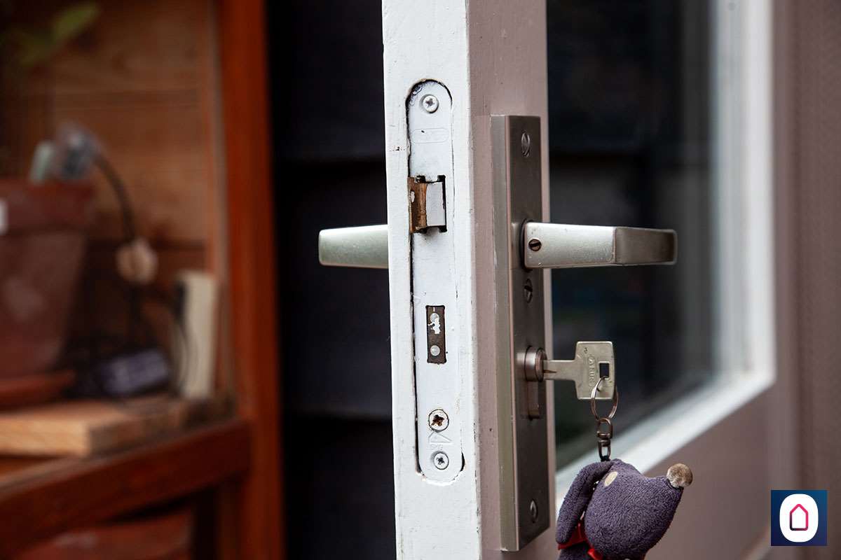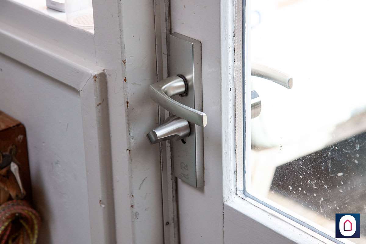 Het slot is zo gemaakt dat hij automatisch weer op slot gaat na een aantal seconden. Aan de binnenkant kun je hem met de hand open maken door aan de knop te draaien.