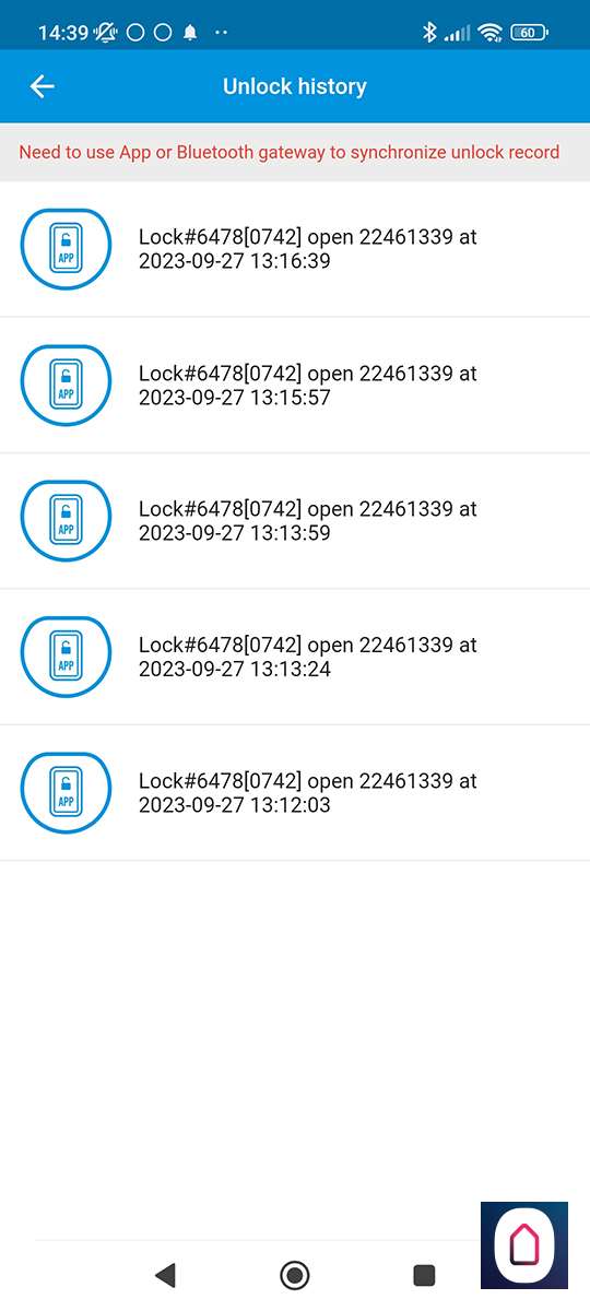 Het slot houdt voor je bij wie hem heeft geopend. Omdat het slot via BT werkt en geen internet verbinding heeft moet je hem synchroniseren met de APP. Hij haalt dan de laatste gegevens op.
