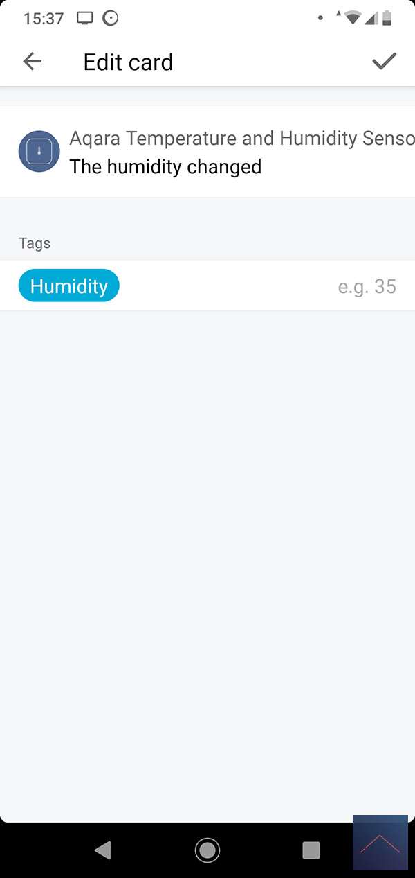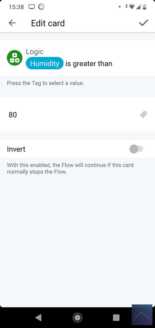 Met deze sensor kun je natuurlijk goed je ventilatie aansturen. Dus als voorbeeld regel maak ik als de luchtvochtigheid boven de 80% komt dat dan de ventilator wordt aangezet.