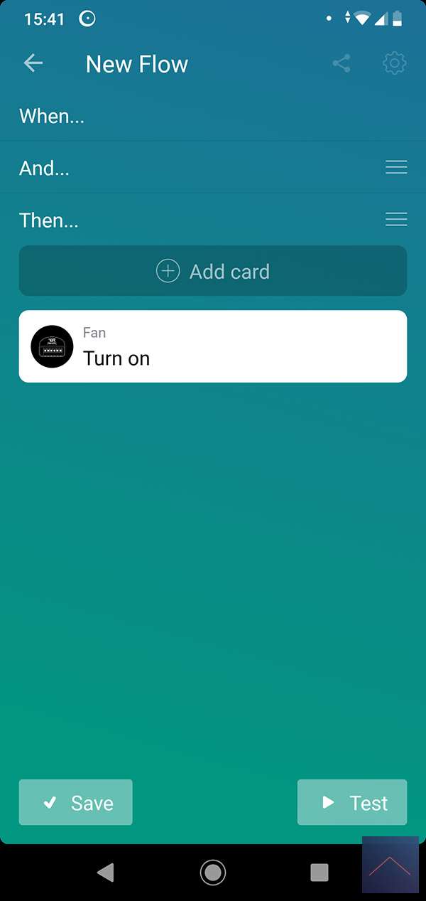 Om hem weer uit te zetten maken ik een regel als de luchtvochtigheid onder de 80% komt dat hij dan weer uit gaat. Wil je voorkom dat hij direct uitgaat kun je er nog een timer inbouwen.