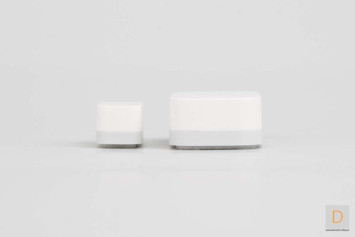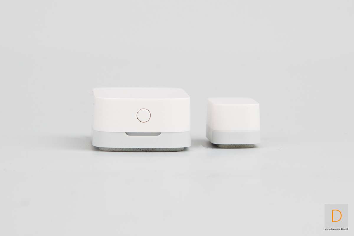 Hij werkt via de Zigbee protocol en wordt gevoed door een CR1632. Deze batterij is niet zo heel goed te verkrijgen. Maar als je hem online besteld is hij wel te koop voor zo'n 80 cent p/s. Met zijn formaat kun je hem redelijk onzichtbaar ophangen. Hij is namelijk maar 4,10 x 2,20 x 1,10 cm groot. Wat hem niet de kleinste op de markt (dat is zijn broertje) maakt maar wel een stuk kleiner dan zijn Z-Wave varianten.