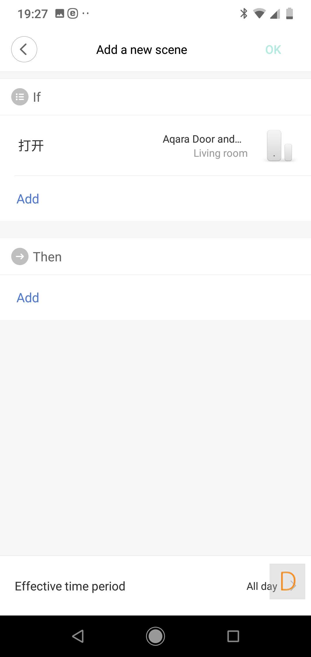 Met onderstaande scene wil ik regelen dat bij het openen van de deur een lamp aan gaat.