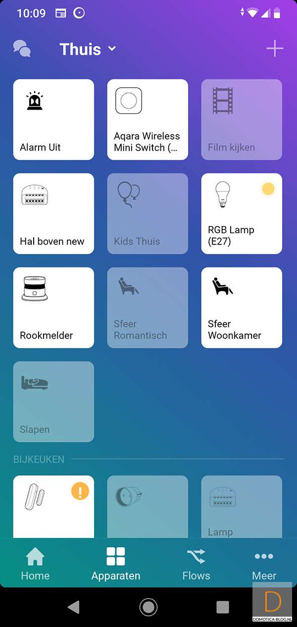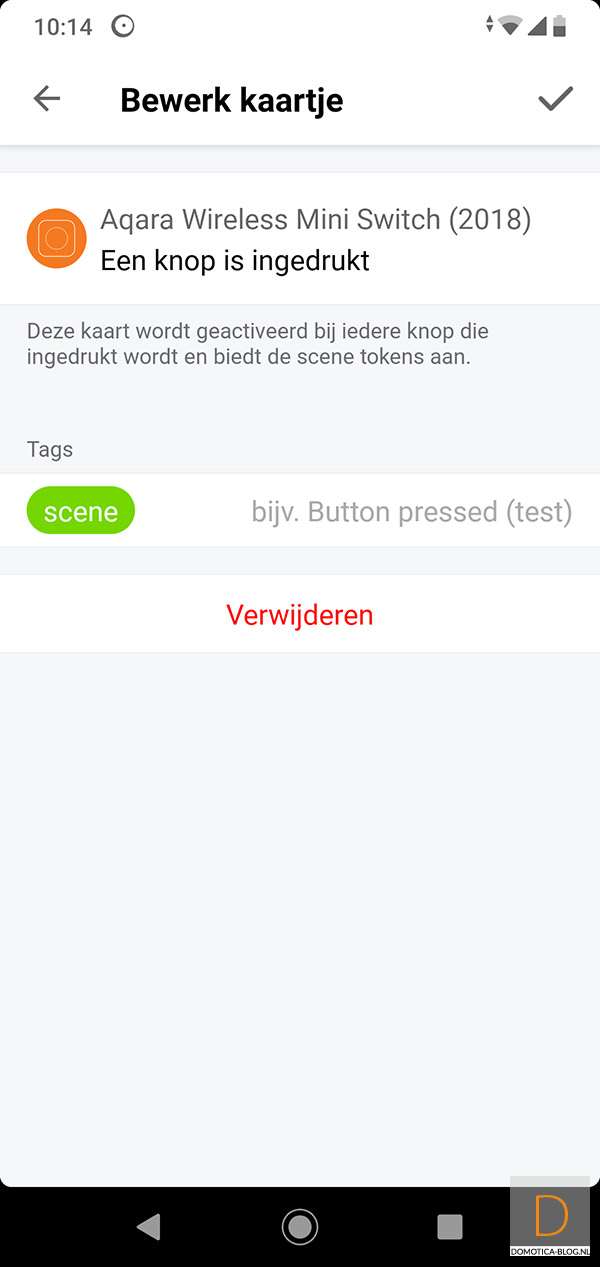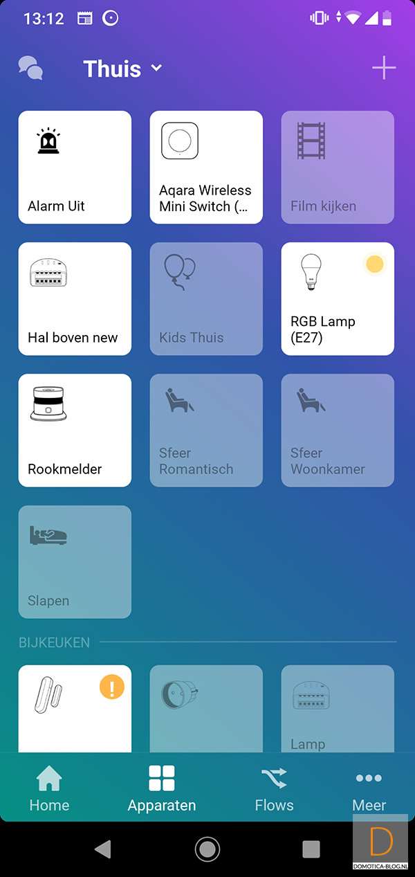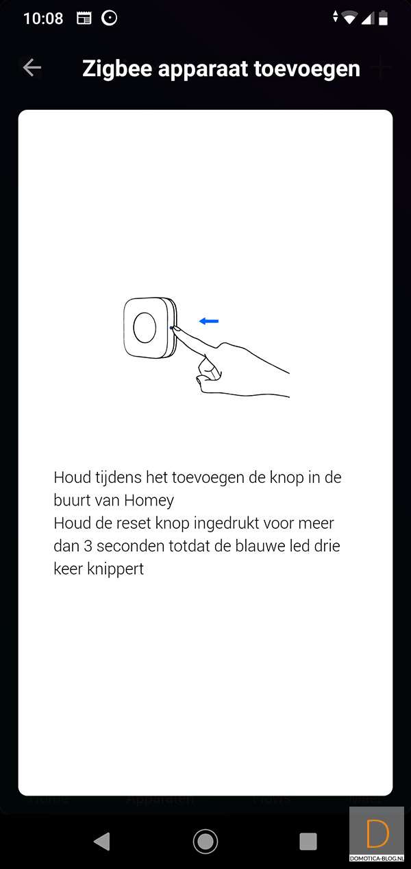 De Homey heeft de mogelijkheid om deze wireless switch rechtstreeks te gebruiken zonder de Xiaomi Gateway. Om hem toe te voegen log je in op de Homey en ga je naar je apparaten. Vervolgens klik je op het plusje en zoek je de Xiaomi Aqara wireless mini switch op. Mocht je de APP niet hebben dan moet je deze eerst even installeren. Let er trouwens op dat je de juiste versie selecteert. In ons geval de Aqara wireless mini switch (2018). Om het toevoegen te starten druk je 5 seconden lang het knopje aan de zijkant in. Het LEDje zal blauw gaan knipperen. Ik zie de sensor verschijnen en met een druk op de knop wordt hij geregistreerd. Ik zie tevens de batterij status. Het enige wat ontbreekt is de logging, ik zie mijn 'drukken op de knop' niet verschijnen, terwijl hij wel gewoon werkt met een flow.