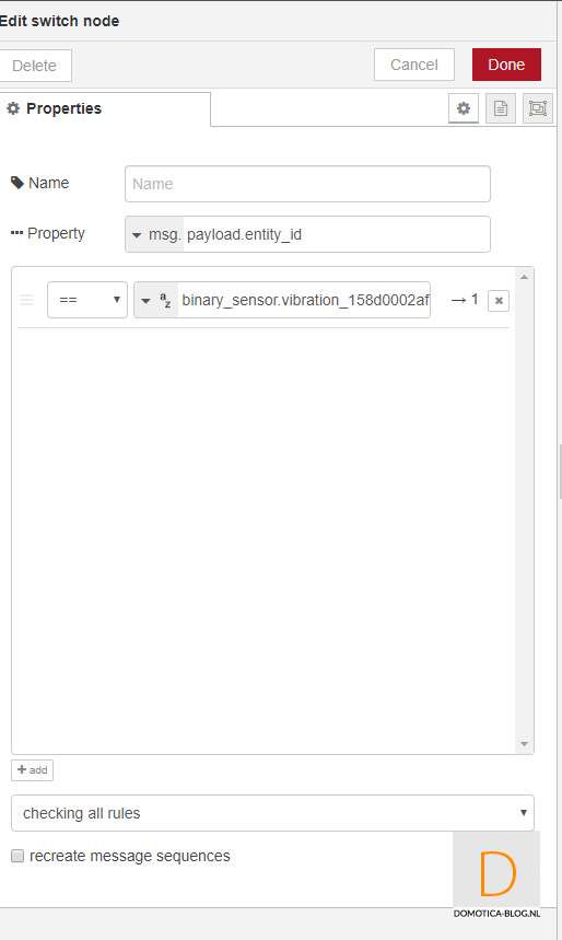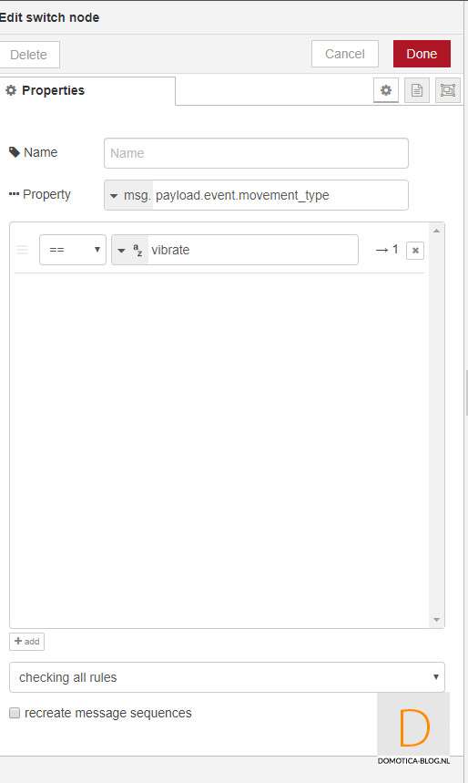 Als voorbeeld ga ik gebruik maken van de vibratie in de sensor. Als deze een trilling geeft gaat de lamp in de hal aan.