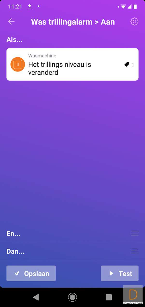 Als voorbeeld flow zou ik graag willen weten wanneer mijn wasmachine klaar is, zodat ik niet vergeet de was eruit te halen. Omdat de wasmachine altijd bewegingen/schokken maakt zouden we deze kunnen registeren met de schoksensor. Wij gaan hiervoor de trillingswaarde gebruiken. Als deze boven een bepaalde waarde komt weet ik dat de wasmachine aan staat en als hij weer onder deze waarde komt is hij klaar.