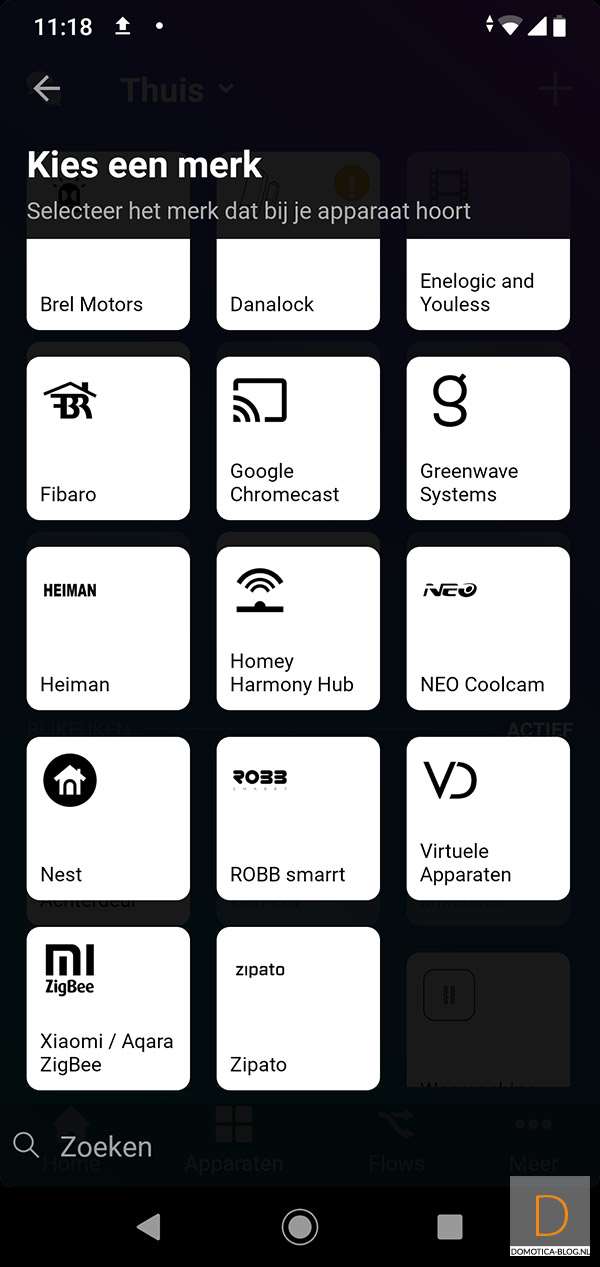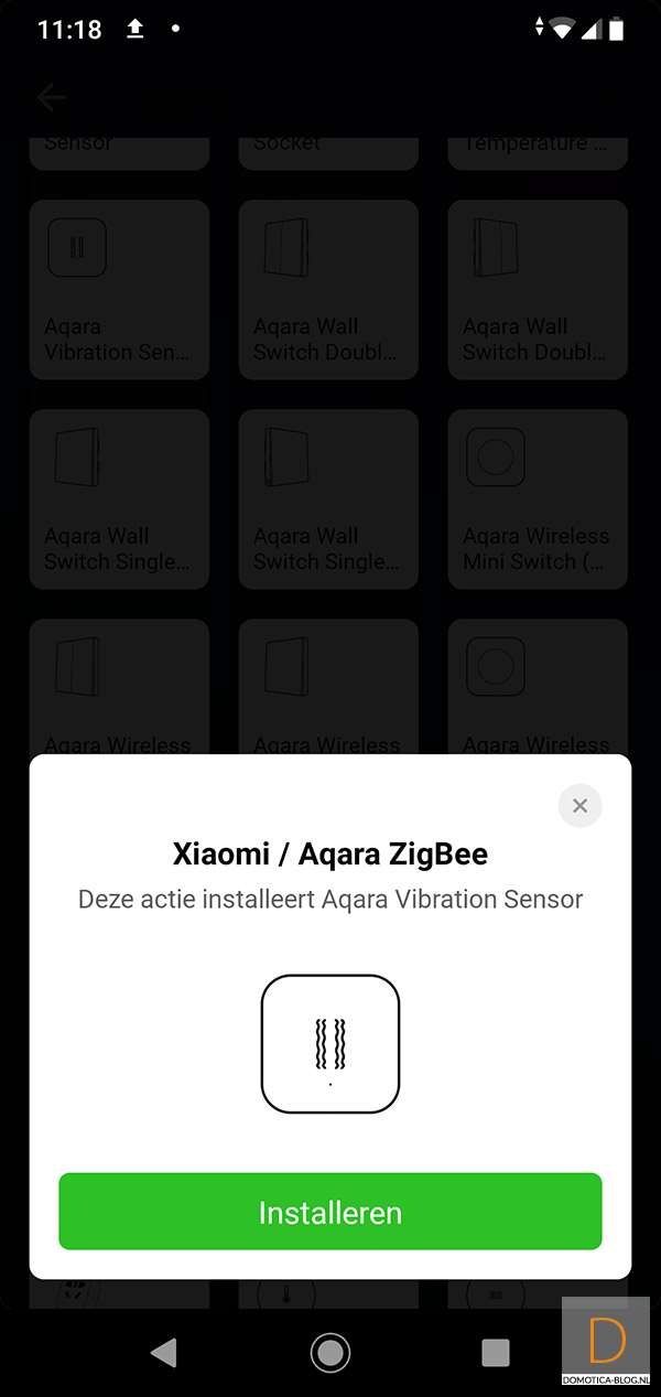 Je kunt deze sensor rechtstreeks gebruiken zonder de Xiaomi Gateway. Dit is natuurlijk heel fijn als je niet al je gegevens naar China wilt sturen. Om hem toe te voegen log je in op de Homey en ga je naar je apparaten. Vervolgens klik je op het plusje en zoek je de Aqara Vibration Sensor op. Mocht je de APP niet hebben dan moet je deze even installeren.