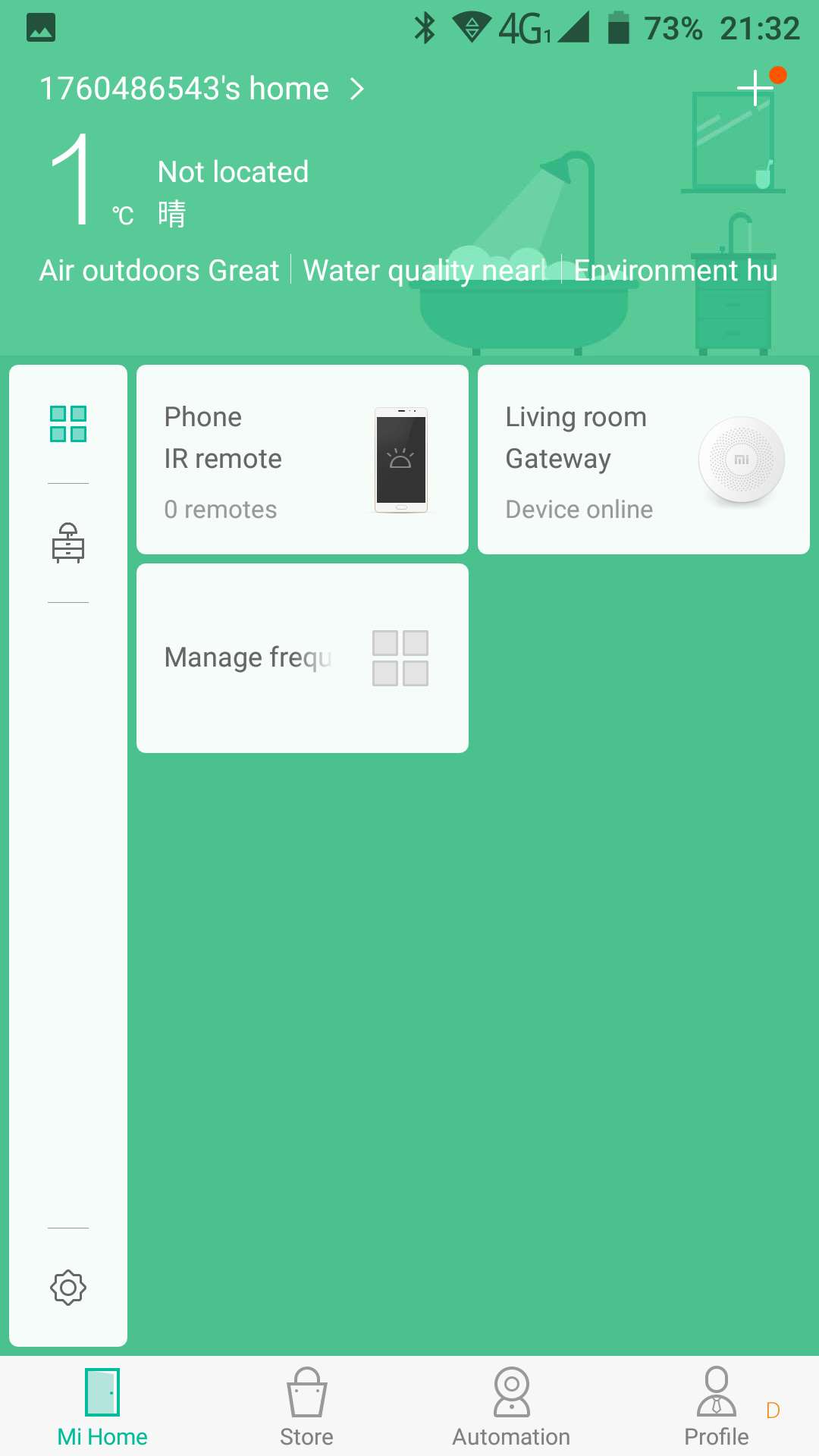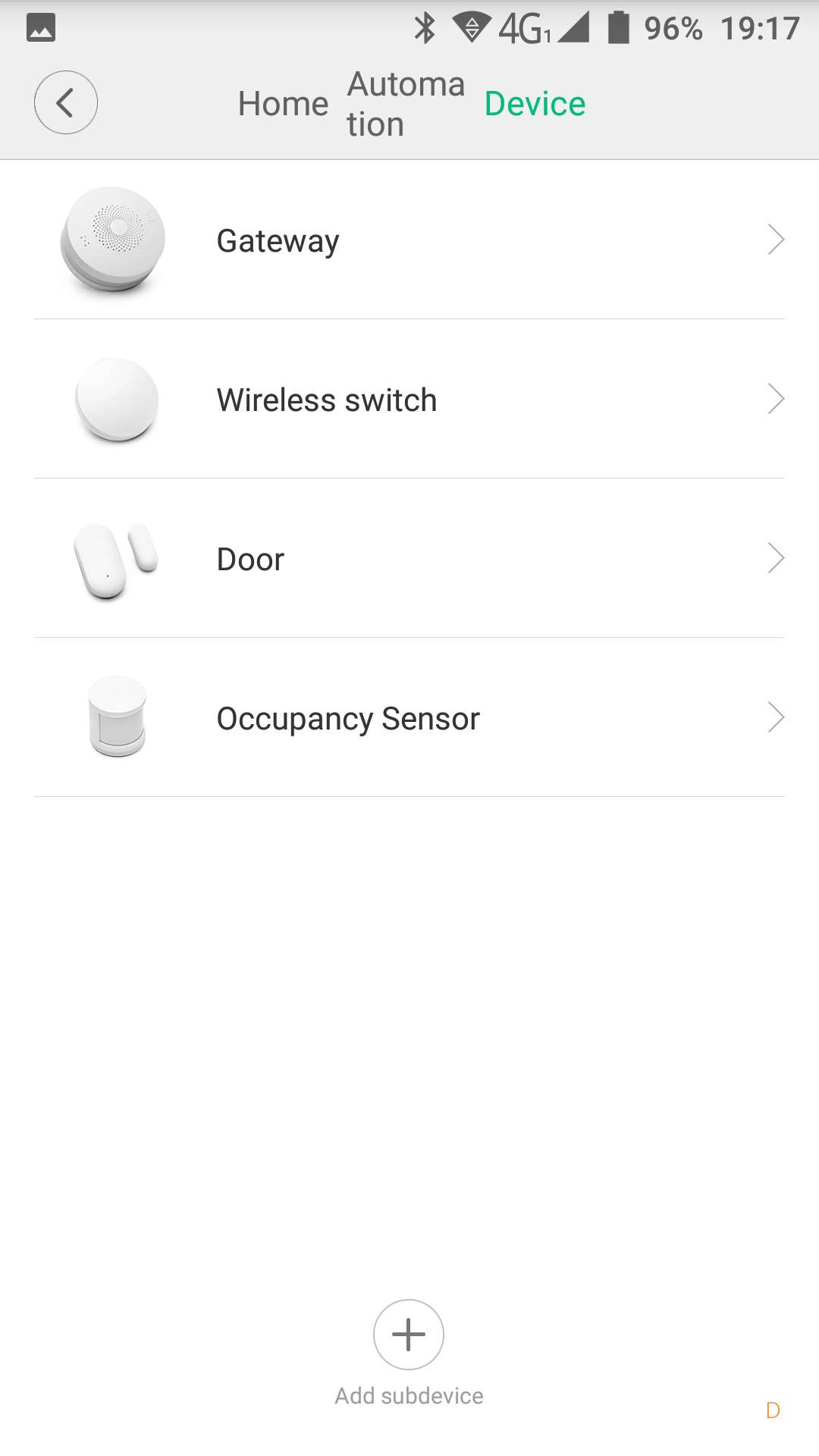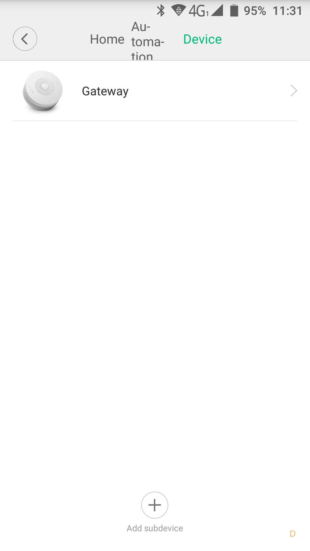 Na het aanmaken van een account voorzie je de gateway van stroom. Hij zal een mooie chinese tekst zeggen en geel gaan knipperen en gevonden worden in de APP. Hierna maakt je telefoon een tijdelijk connectie met de MiHome zodat er naar de MiHome verbonden kan worden met je eigen WiFi. Nadat hij was toegevoegd kwam er meteen een update binnen en kreeg ik een extra APP op me telefoon (Gateway). Als je deze opent kun je je apparaten gaan toevoegen (later hier meer over).