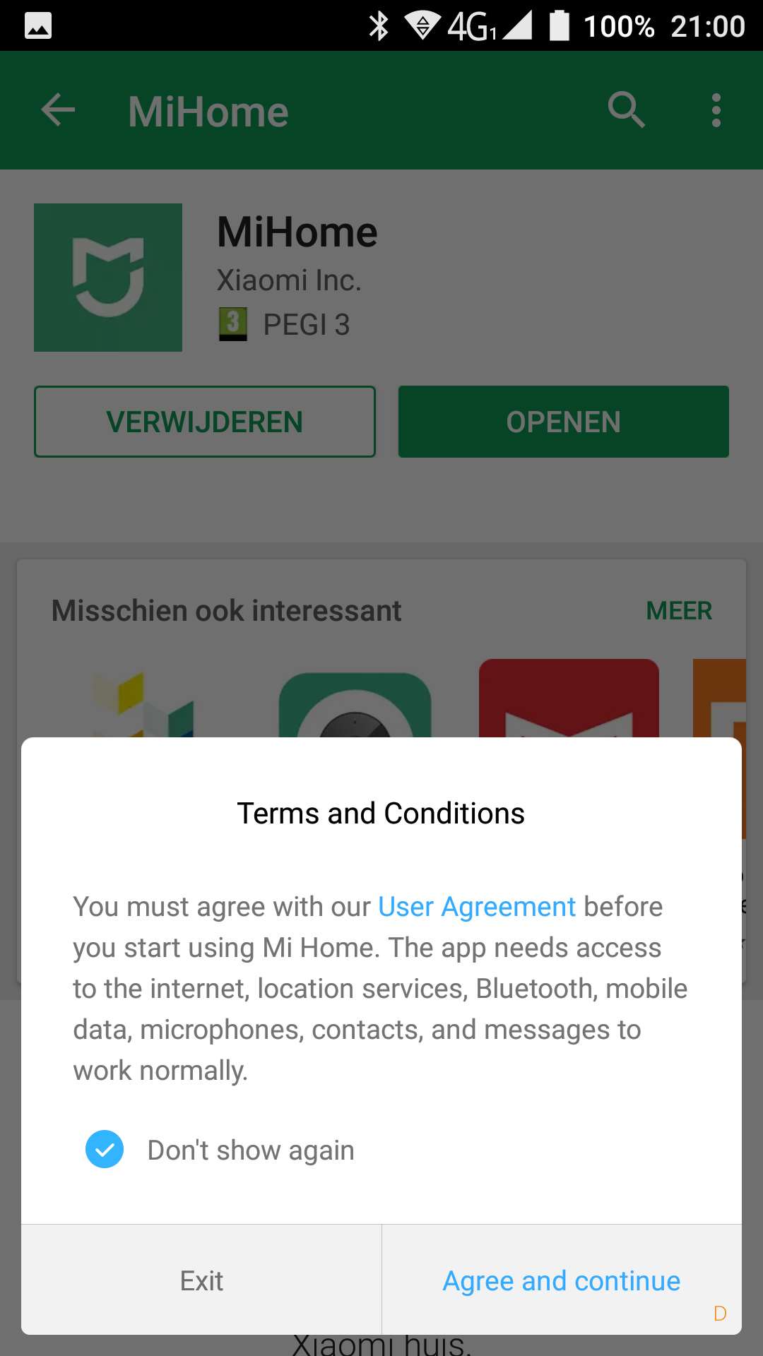 Het installeren gebeurd door middel van een APP (Android/iOS), deze moet je dus als eerste installeren. Het valt mij op dat de APP mega veel permissie vraagt, hij wil zo'n beetje bij je gehele telefoon kunnen. Hierdoor zou Xiaomi bij je privé gegevens kunnen komen. Ben je hier dus niet van gediend dan is dit product niet iets voor jouw. Nadat je de voorwaarden hebt geaccepteerd, moet je "Mainland China" kiezen, als je dit niet doet kun je niks met de gateway. De MiHome werkt namelijk officieel alleen in China en met de Chinese servers. Dit merk je overigens ook bij het inloggen op de APP, dit duurt even.