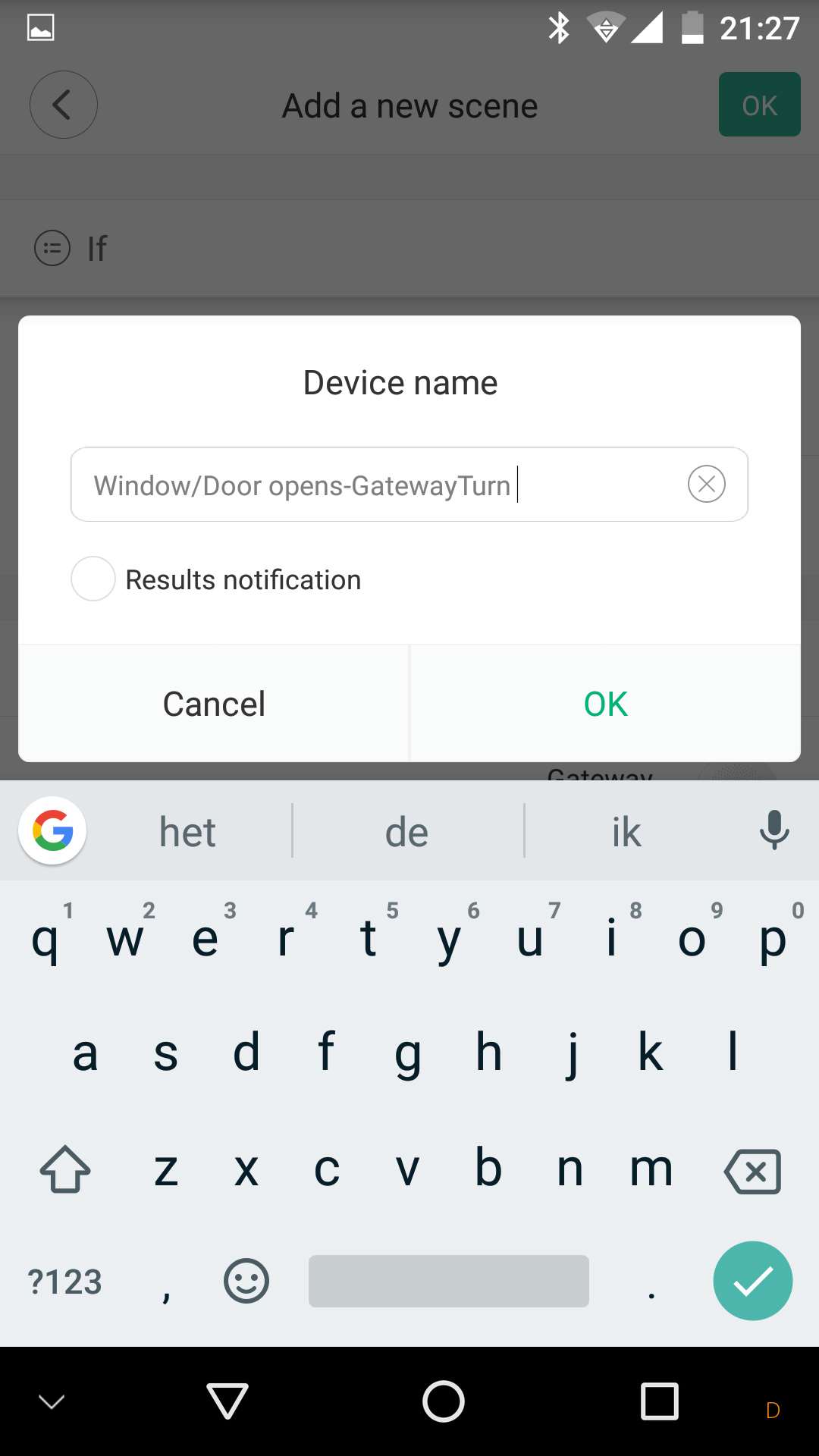 Het maken van scene's (regels) is op bovenstaande manier gebruikersvriendelijk en iedereen kan hier wel zijn weg in vinden. Hierbij moet wel gemeld worden dat het maken van wat complexere regels lastig is door bv het ontbreken van variabelen en een "OF" functie. Het is wel fijn dat er meerdere condities kunnen worden gebruiken als trigger.
