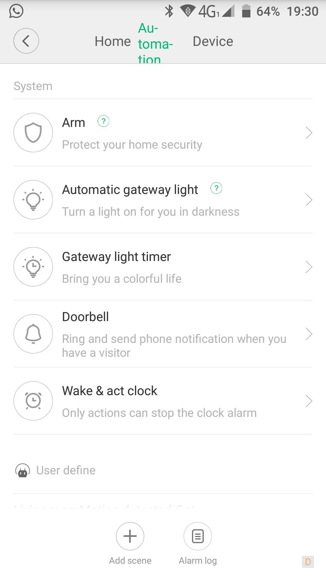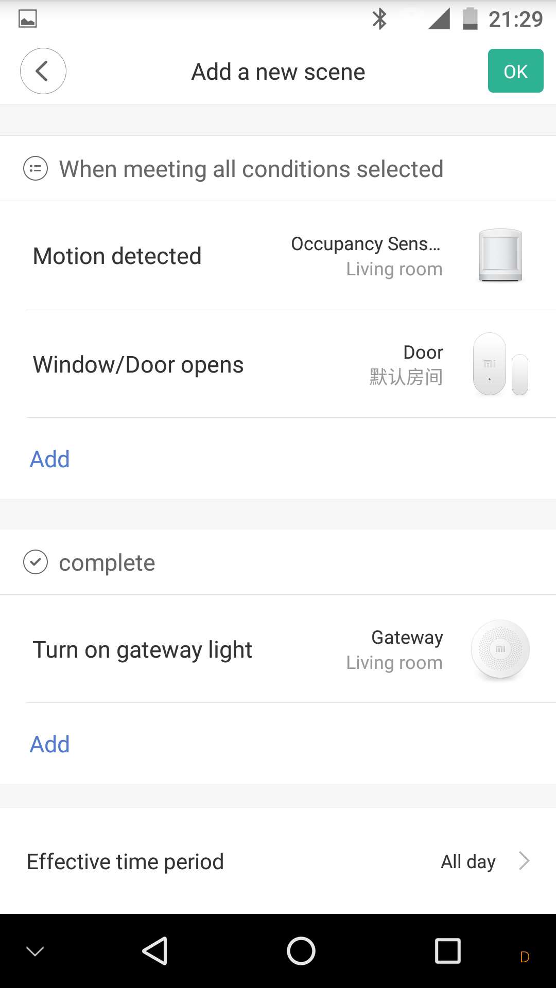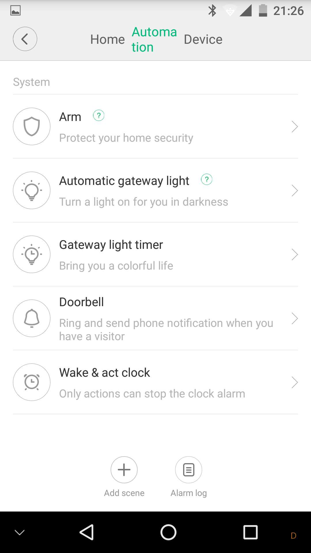 Het kunnen aan- en uitzetten van een lamp via je smartphone is natuurlijk zeer handig maar je wilt eigenlijk dat dit allemaal automatisch gaat. Een goed domotica systeem heeft dus een mogelijkheid om regels te maken. De Mi Home heeft deze functionaliteit gelukkig aan boord.