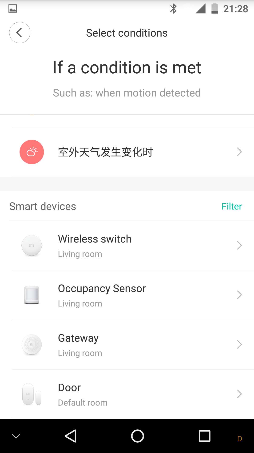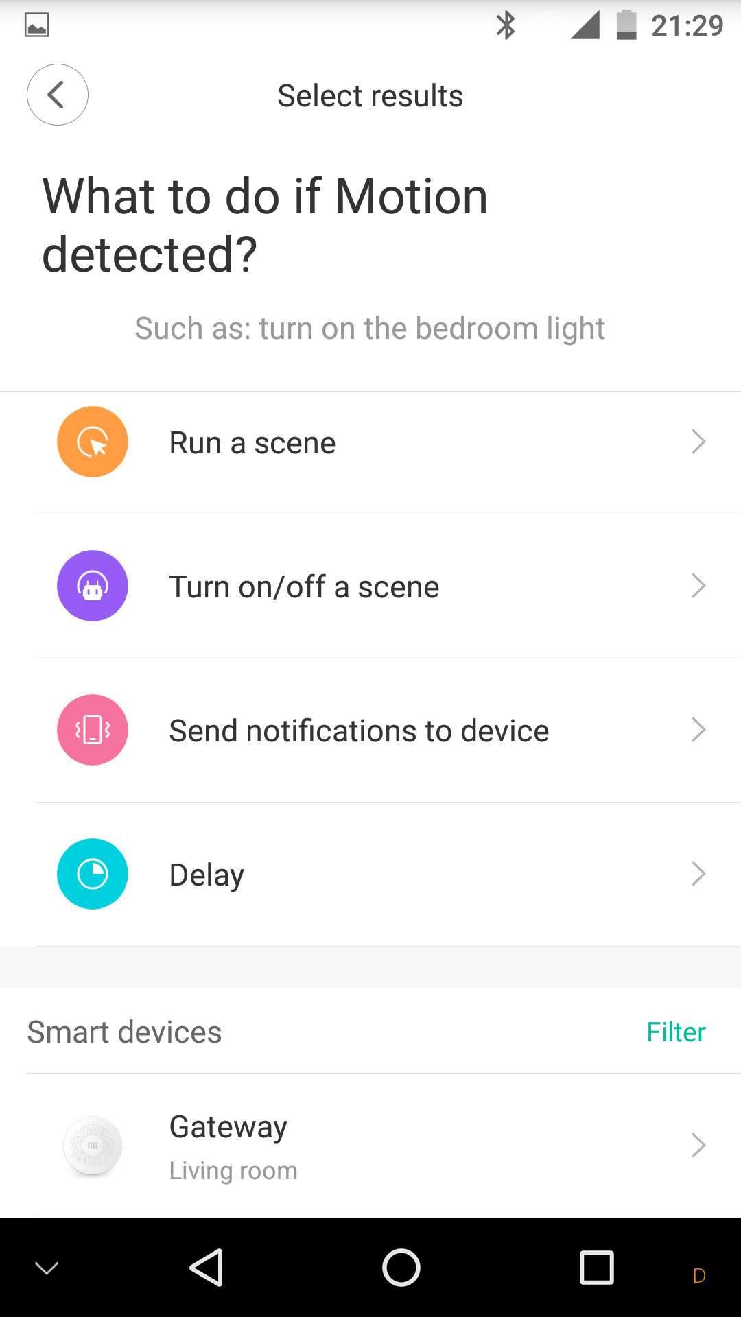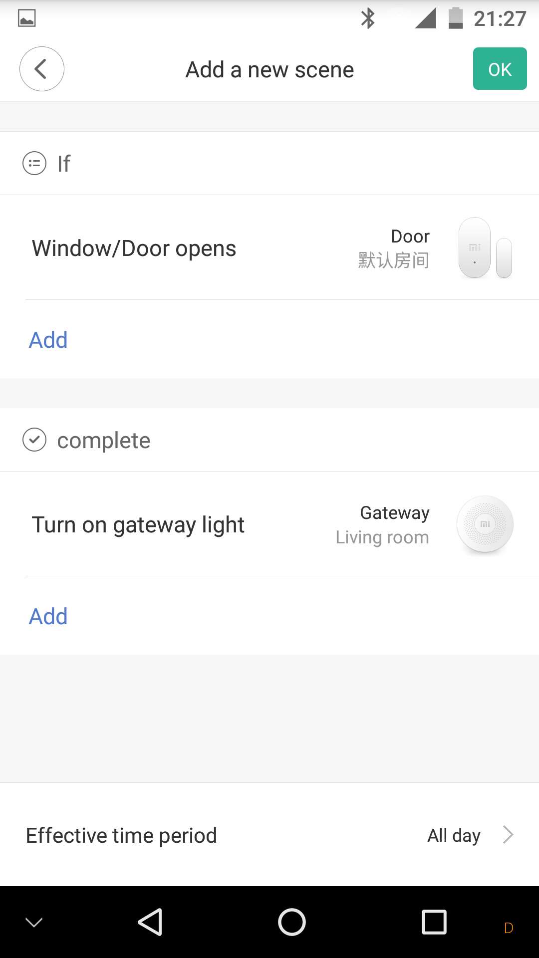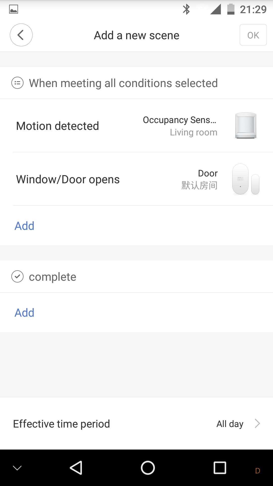 Het kunnen aan- en uitzetten van een lamp via je smartphone is natuurlijk zeer handig maar je wilt eigenlijk dat dit allemaal automatisch gaat. Een goed domotica systeem heeft dus een mogelijkheid om regels te maken. De Mi Home heeft deze functionaliteit gelukkig aan boord.