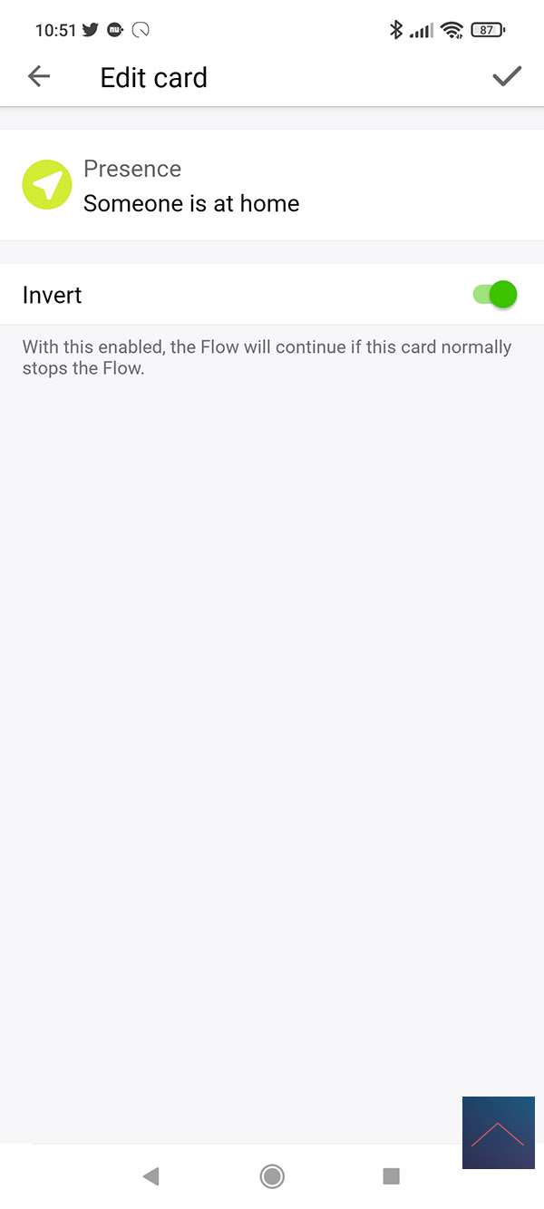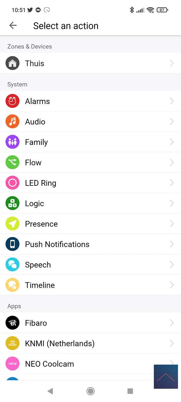 Ik wil graag, als ik niet thuis ben, een notificatie ontvangen als de rookmelder afgaat. Hiervoor gebruik ik de rookmelder als trigger en gebruik in de "EN" de aanwezigheid functie in de Homey. Als er aan deze voorwaarden wordt voldaan stuur ik een noticatie naar iedereen.