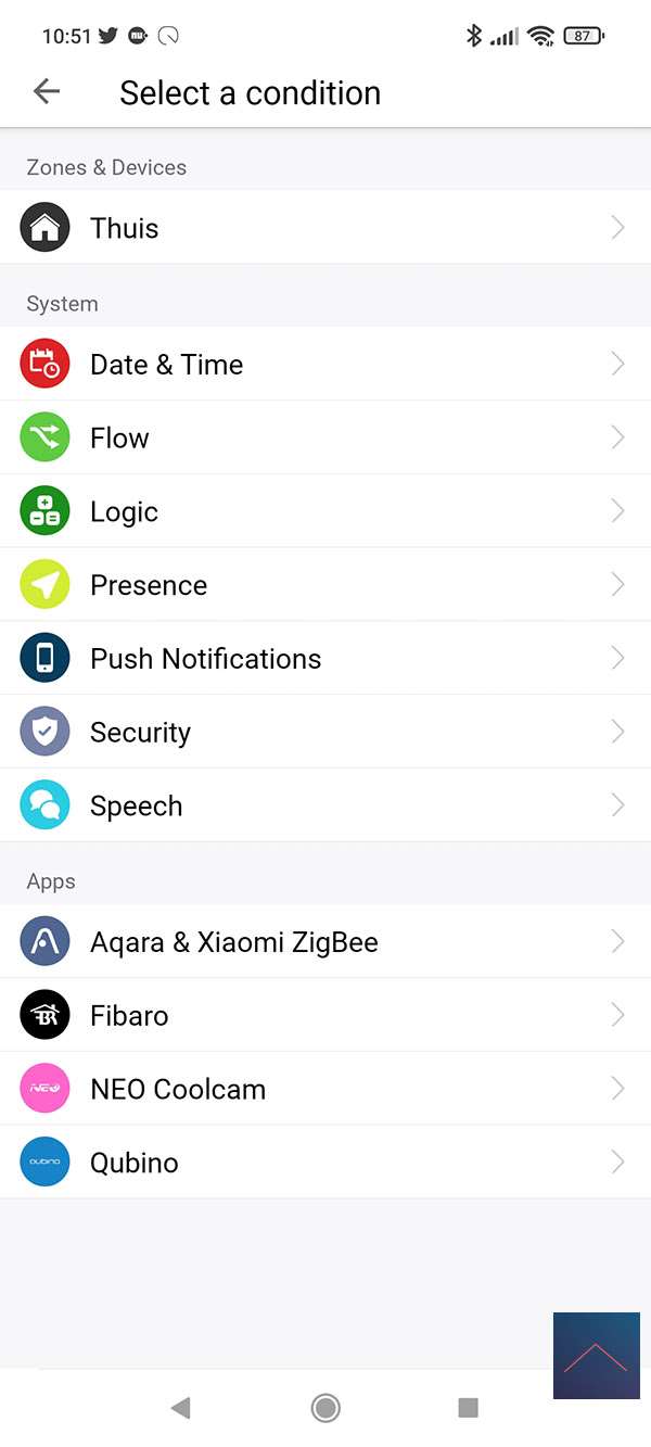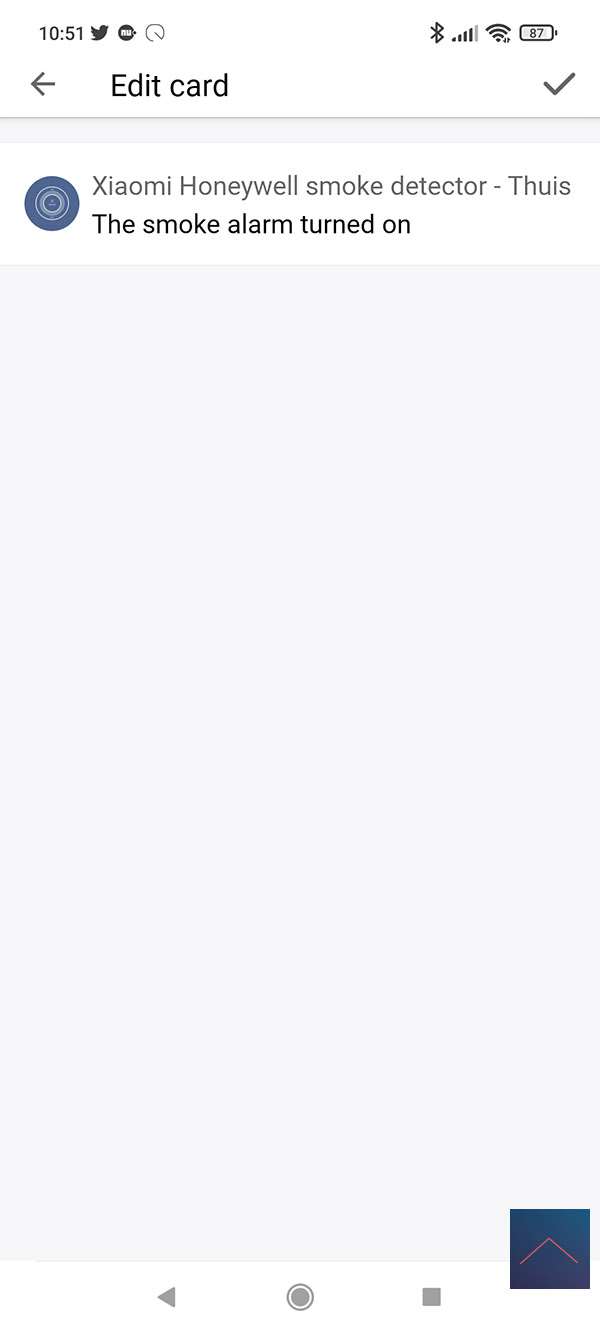 Opmerking: Je kunt bij de "EN" ook als voorwaarden opegeven de hoeveelheid rook. Hiermee zou je valse melding kunnen voorkomen.