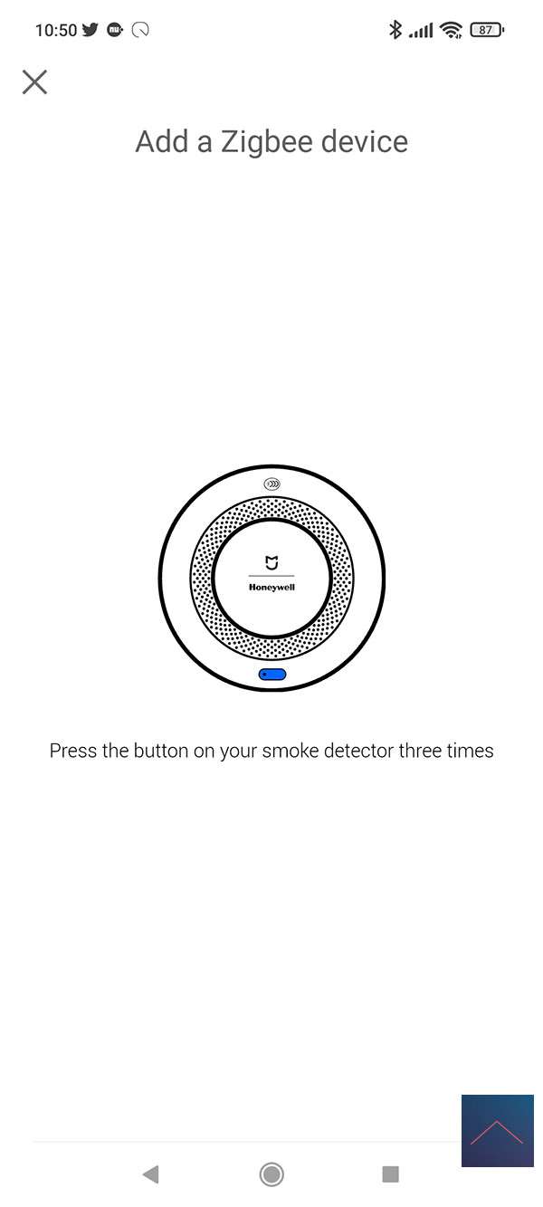 Nu moeten we het knopje op de rookmelder 3x achter elkaar indrukken. Hij geeft bij elke druk een piep. Zorg dat de rookmelder dichtbij de Homey is en je niet te snel drukt en wacht tot het piepje uit is.