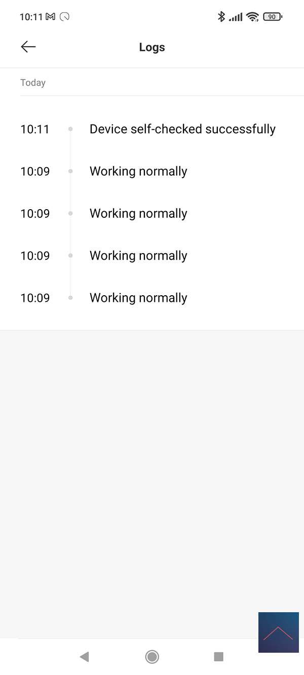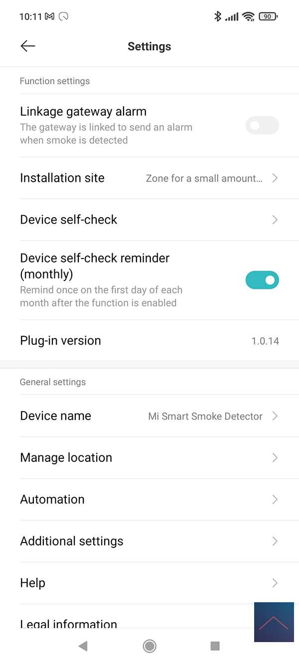 Via de settings kun je een herinnering instellen dat je een check moet doen of de rookmelder nog goed werkt. Dus kun je testen door de knop aan de voorkant in te drukken. De LED gaat dan rood knipperen en 1x geel oplichten. Hij geeft ook nog 1 piep.