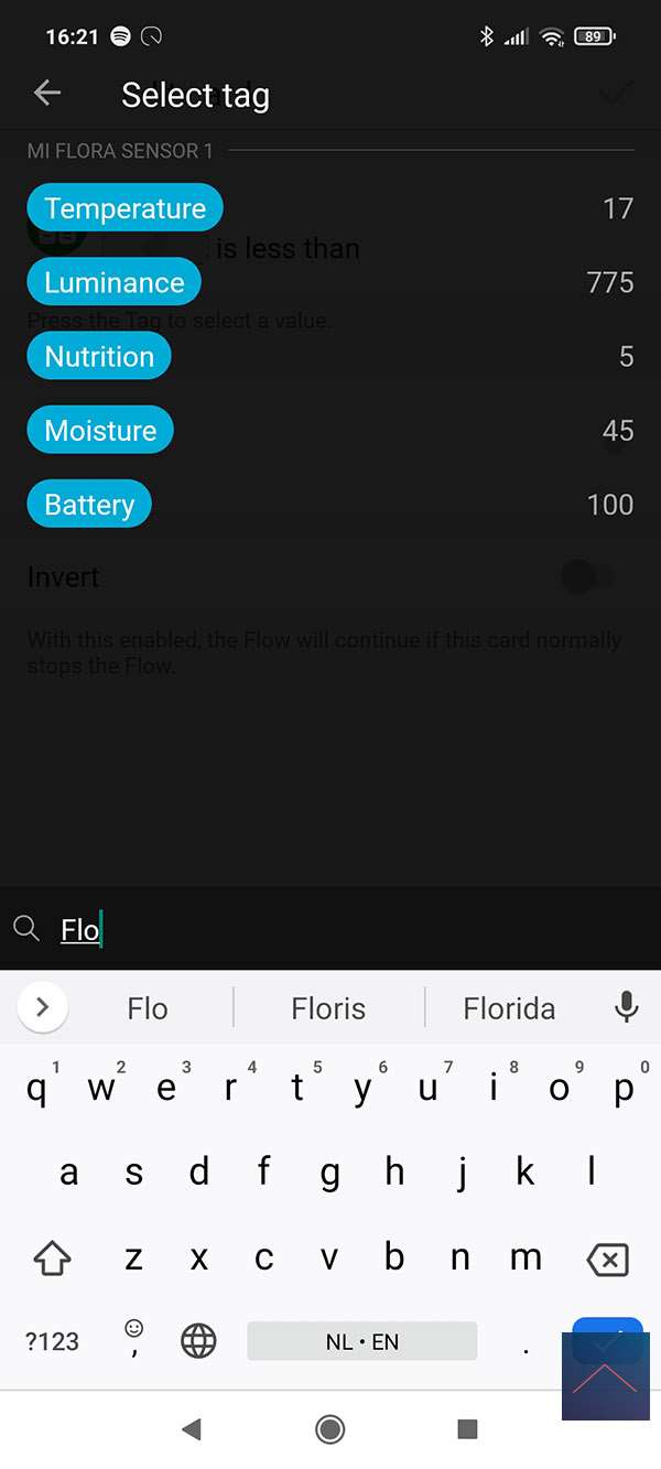We kunnen deze sensor toevoegen door het klepje te verwijderen en het lipje bij de batterij. We maken hem weer dicht en starten de Homey APP op. Nu drukken we op het plusje bij onze apparaten en zoeken daar de Xiaomi MI Flora op. We installeren vervolgens de APP en selecteren de juiste sensor.