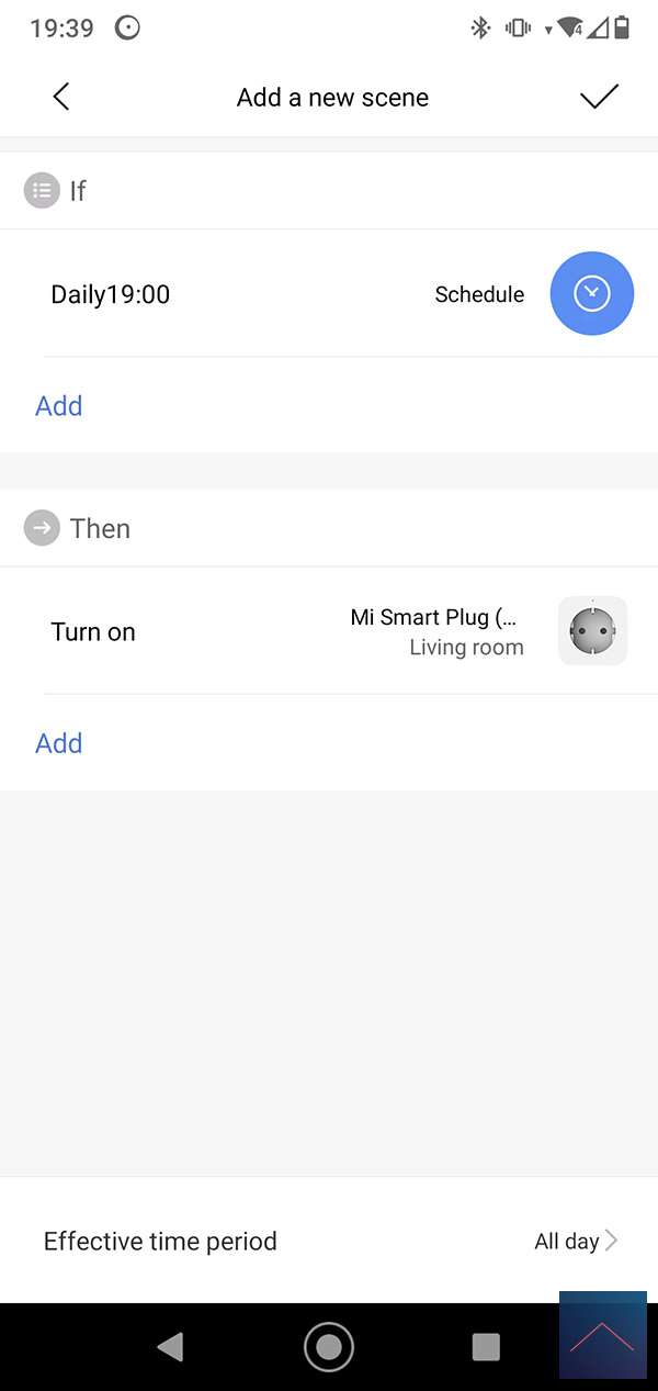 De automatiseer mogelijkheden bij de Xiaomi hub zijn wat beperkt dus om een heel spannend voorbeeld te maken zal niet gaan lukken. Maar we maken dat als het 19.00 uur is dat dan de plug wordt aangezet. Dit kun je gemakkelijk regelen via de "automation" mogelijkheid.