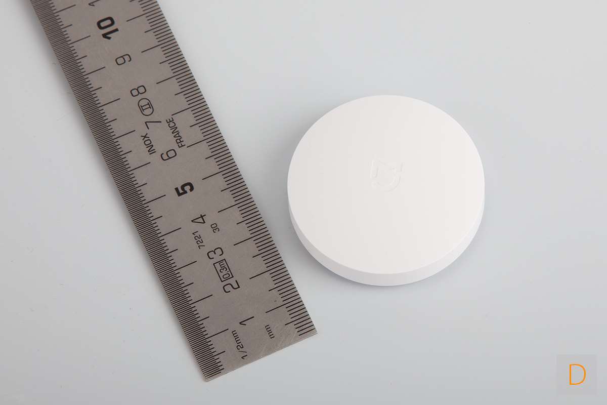 Hij is met zijn 8,5 cm (diameter) en maar 2,0 cm hoog net groot genoeg om lekker te kunnen indrukken. Aan de achterkant zit een LEDje en een gaatje om hem toe te voegen. Er wordt een dubbelzijdige sticker meegeleverd om hem aan de muur te kunnen ophangen. Er is geen mogelijkheid aanwezig om hem vast te schroeven.