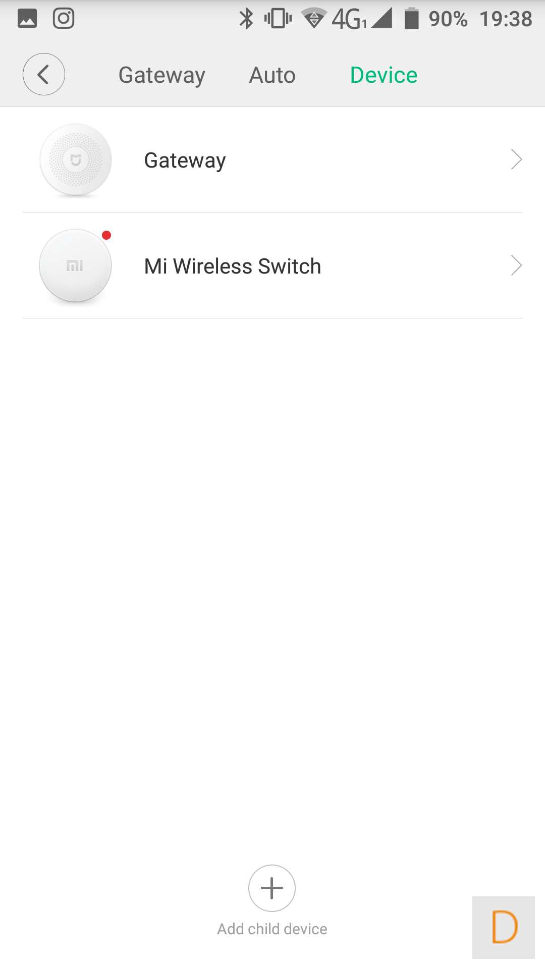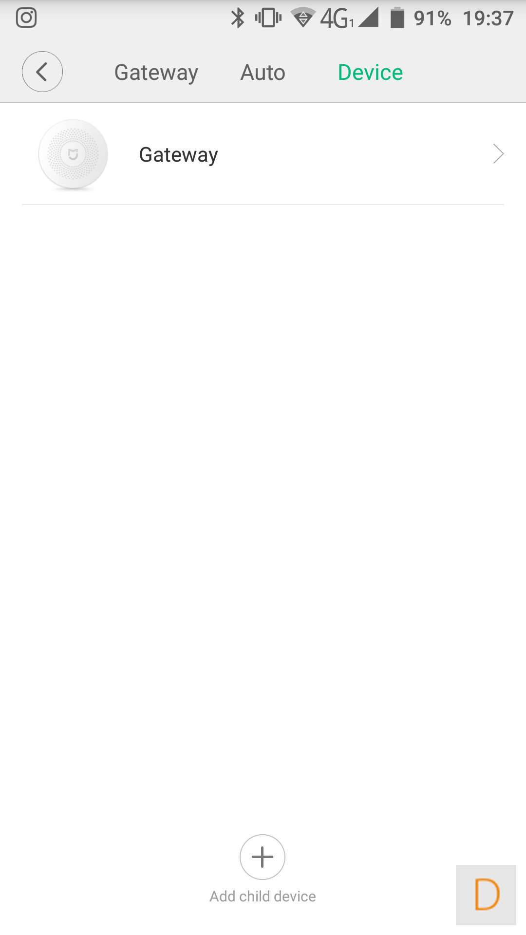 Om deze button toe te voegen aan de Xiaomi gateway moet je in loggen en naar het device gedeelte gaan. Vervolgens klik je op "Add child device" en zoek je de button op.