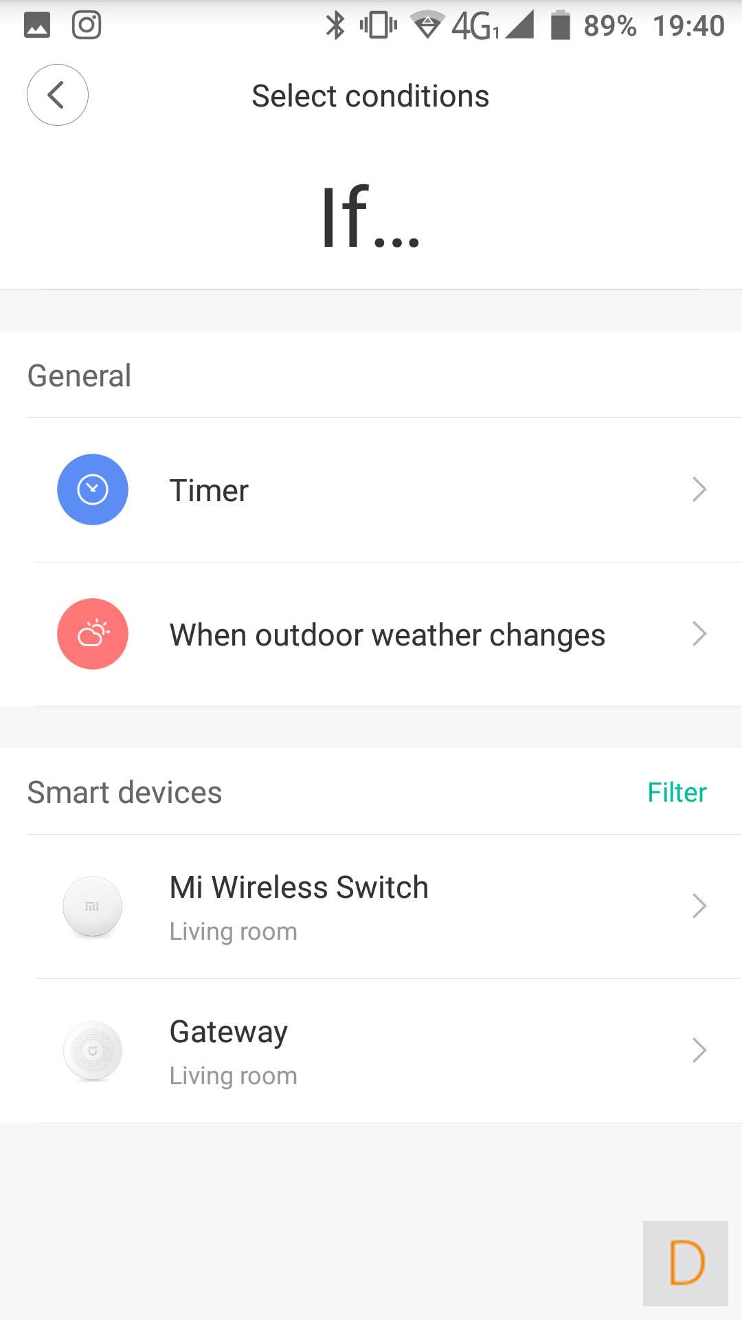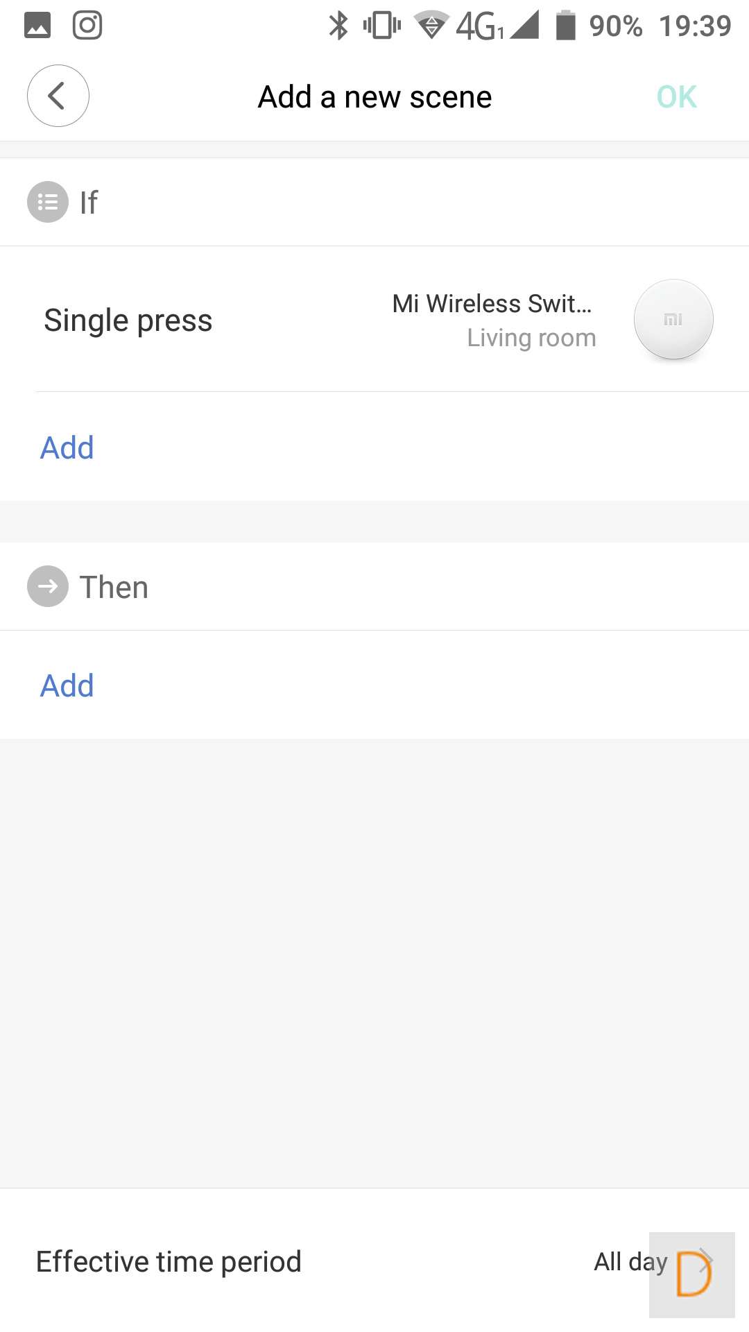Hij werd uiteraard toegevoegd en ik zie de batterijstatus ook. Bij de scene's heb je de 3 mogelijkheden om wat te starten (1x, 2x en lang ingedrukt houden).