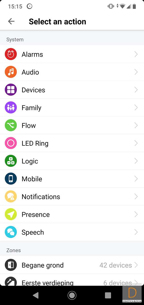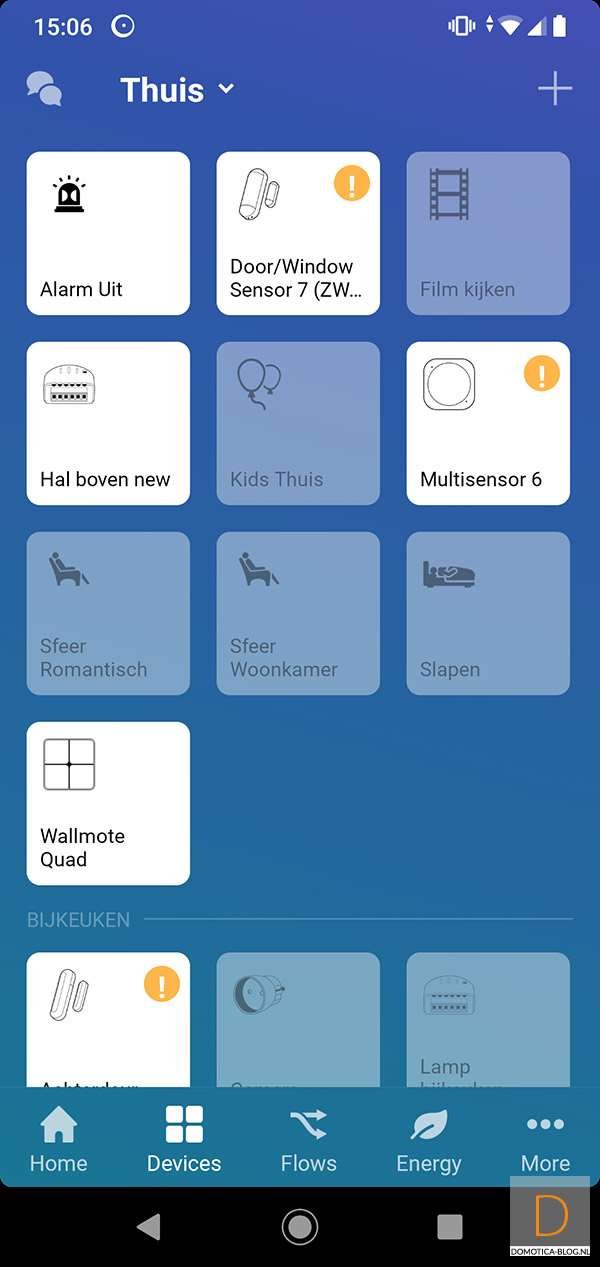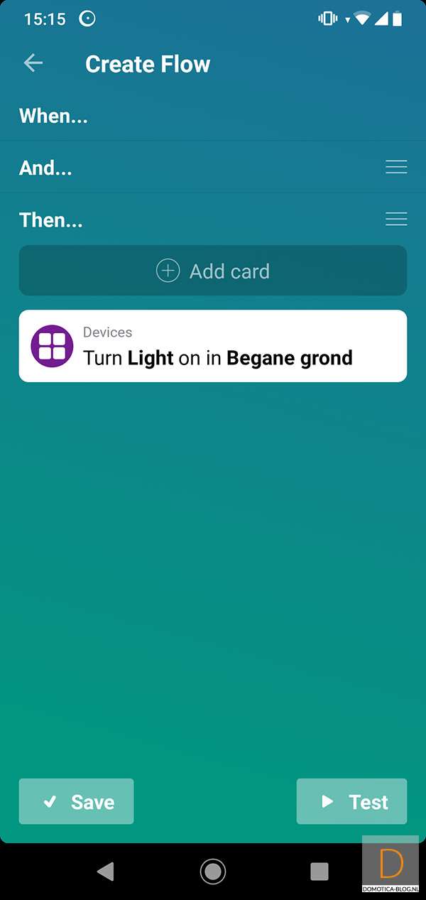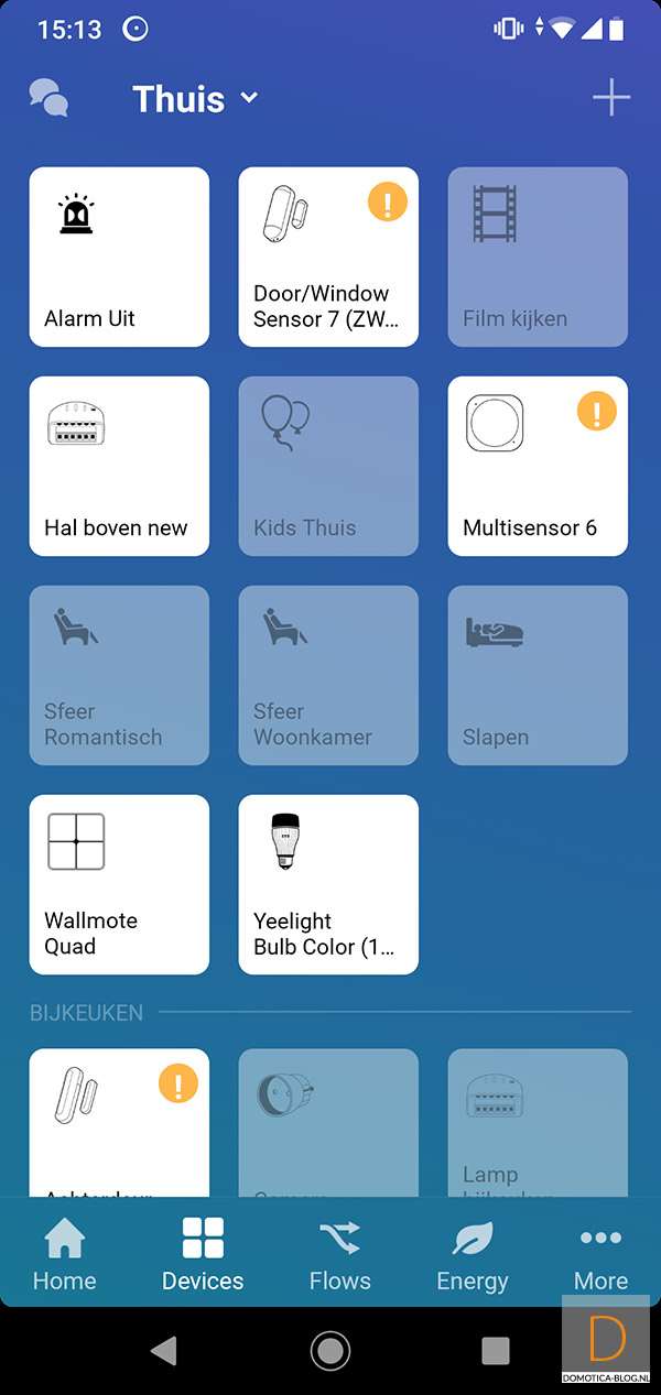 Als de Yeelight bulb wordt aangezet dan gaan alle lampen op de begane grond ook aan. Voor de laatste heeft de Homey een zeer handige kaart waarbij je een ruimte kunt aanzetten en bepaalde apparaten.