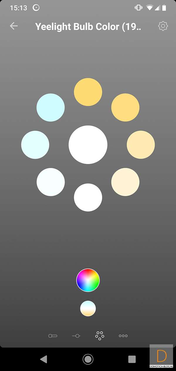Je kunt de lamp aan- en uitzetten, dimmen en de kleuren veranderen.